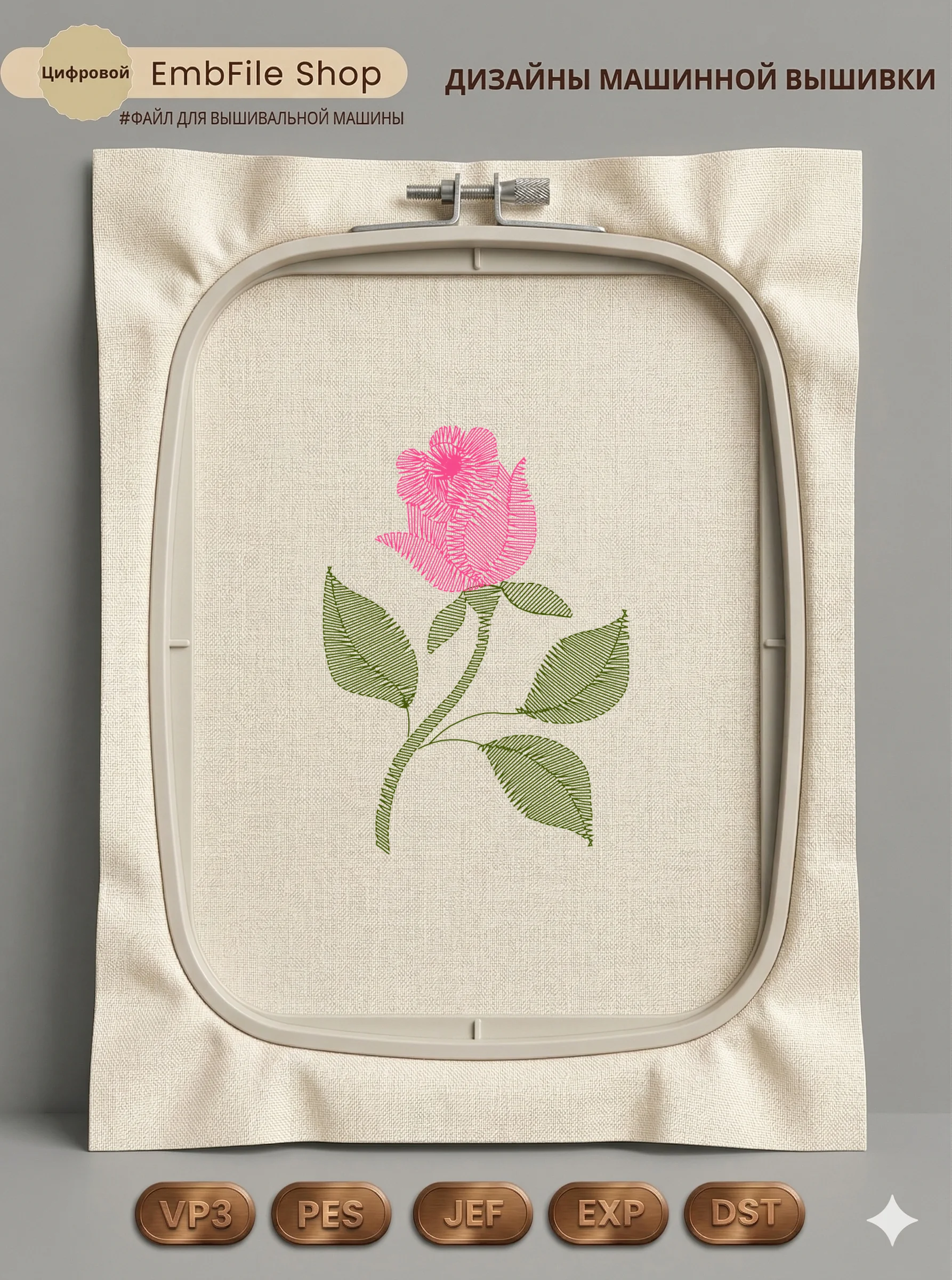 Это цифровой файл для вышивальной машины, а не физический товар (нашивка). Для работы с файлом вам необходимо иметь вышивальную машину и способ передачи файла на устройство (USB-флешка и т.д.).