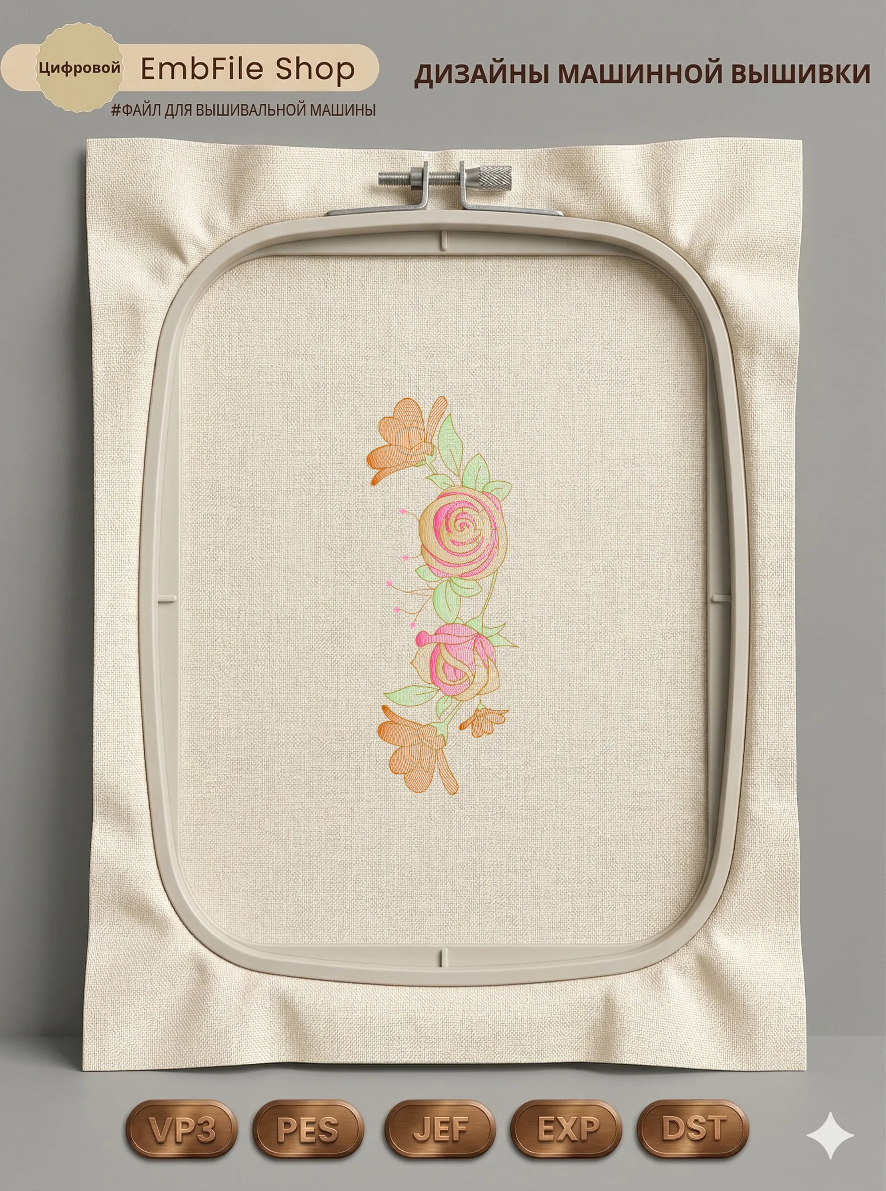 Это цифровой файл для вышивальной машины, а не физический товар (нашивка). Для работы с файлом вам необходимо иметь вышивальную машину и способ передачи файла на устройство (USB-флешка и т.д.).