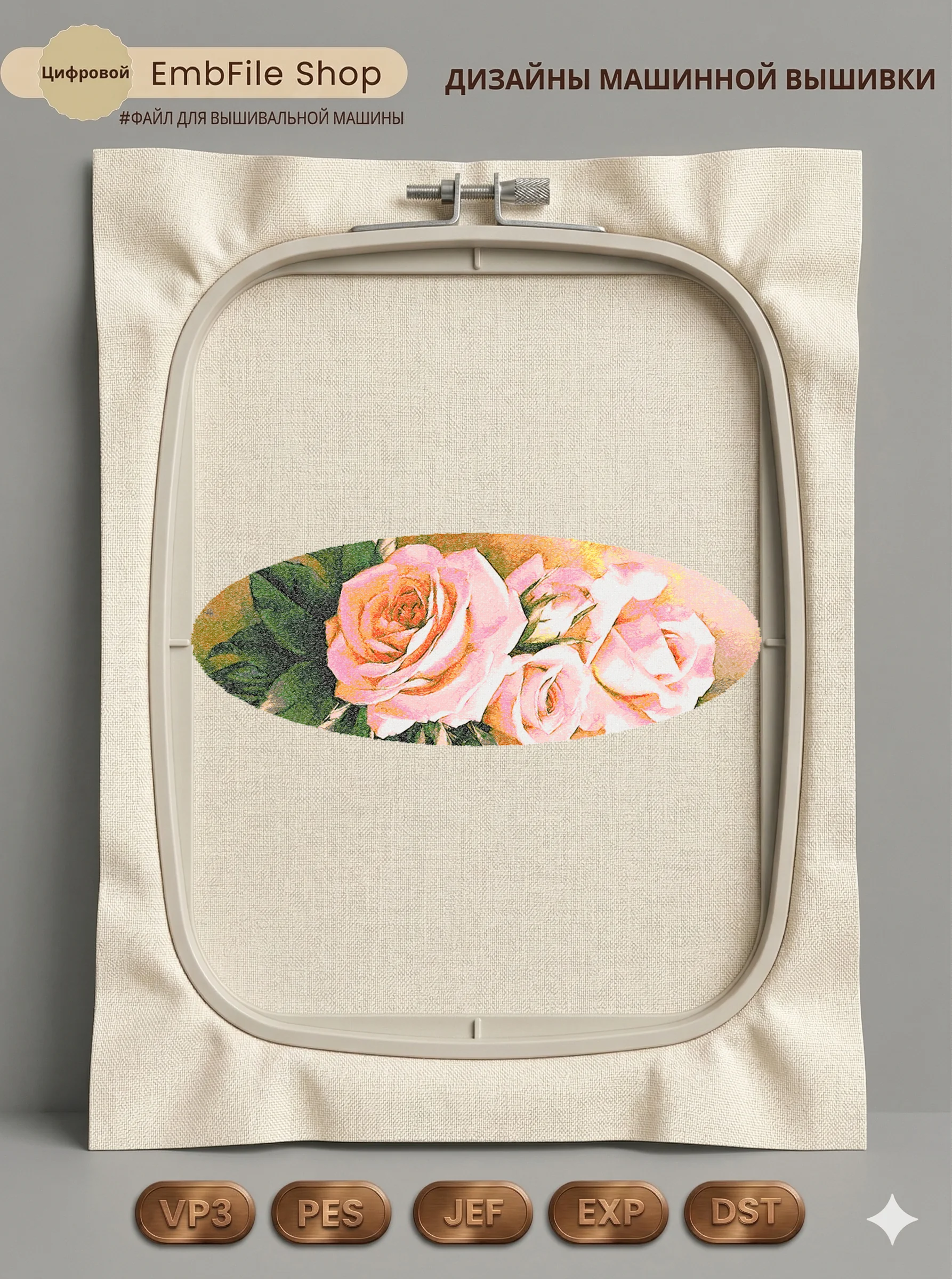 Это цифровой файл для вышивальной машины, а не физический товар (нашивка). Для работы с файлом вам необходимо иметь вышивальную машину и способ передачи файла на устройство (USB-флешка и т.д.).