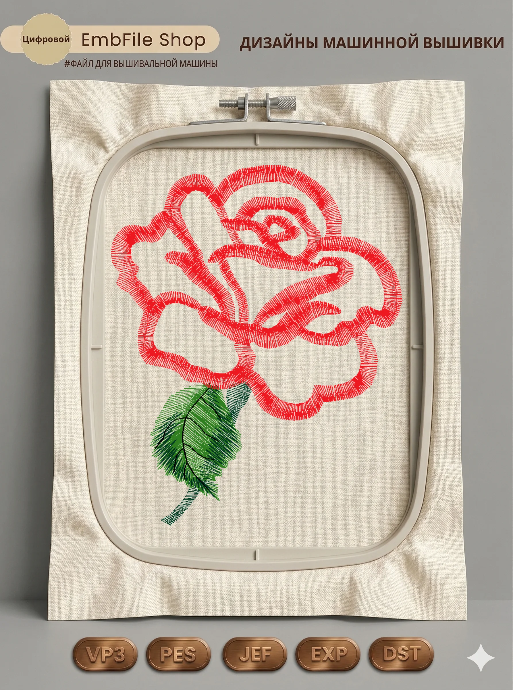 Дизайн протестирован на различных типах тканей, что гарантирует чистое и стабильное нанесение стежков.