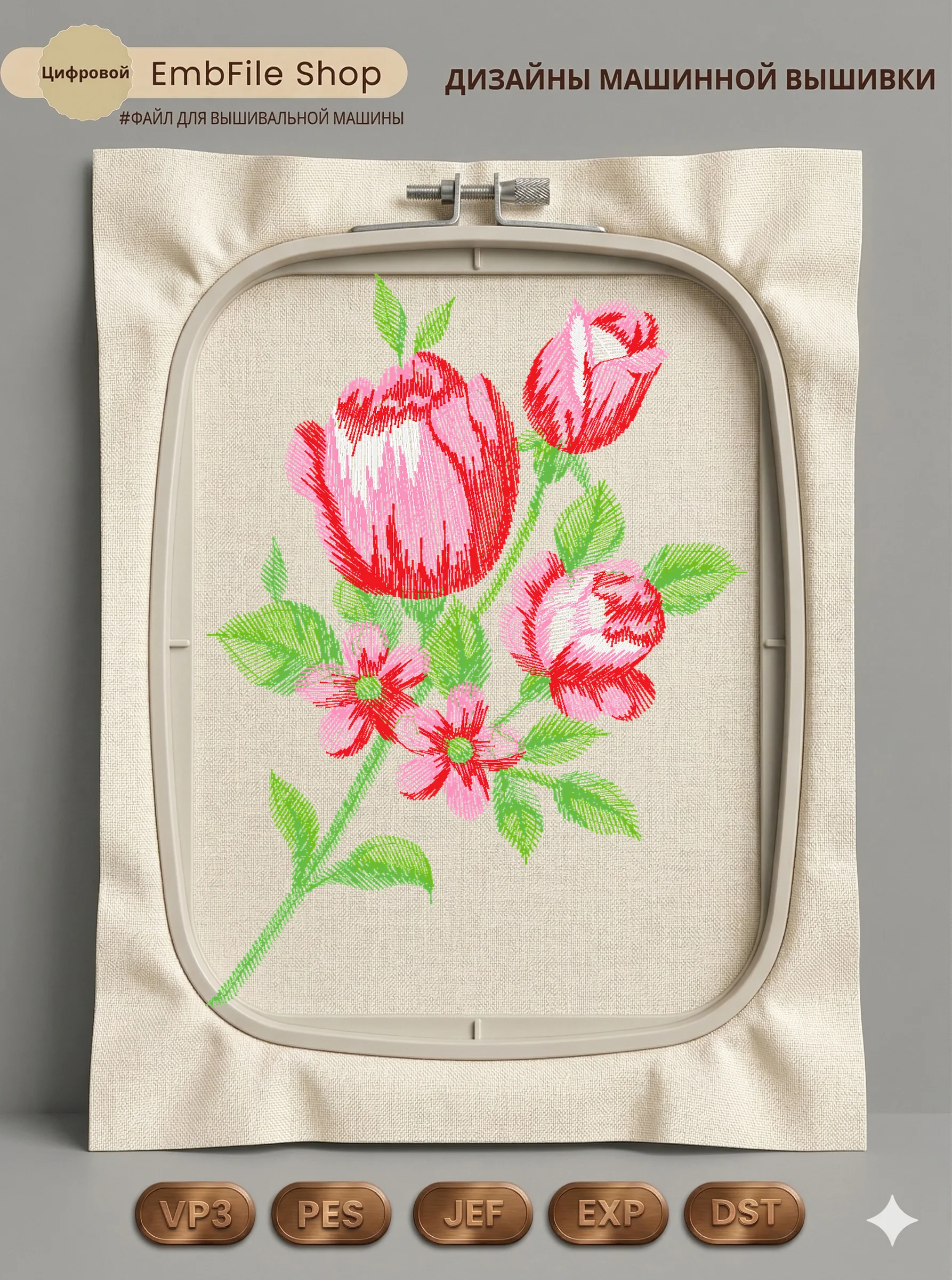 Это цифровой файл для вышивальной машины, а не физический товар (нашивка). Для работы с файлом вам необходимо иметь вышивальную машину и способ передачи файла на устройство (USB-флешка и т.д.).