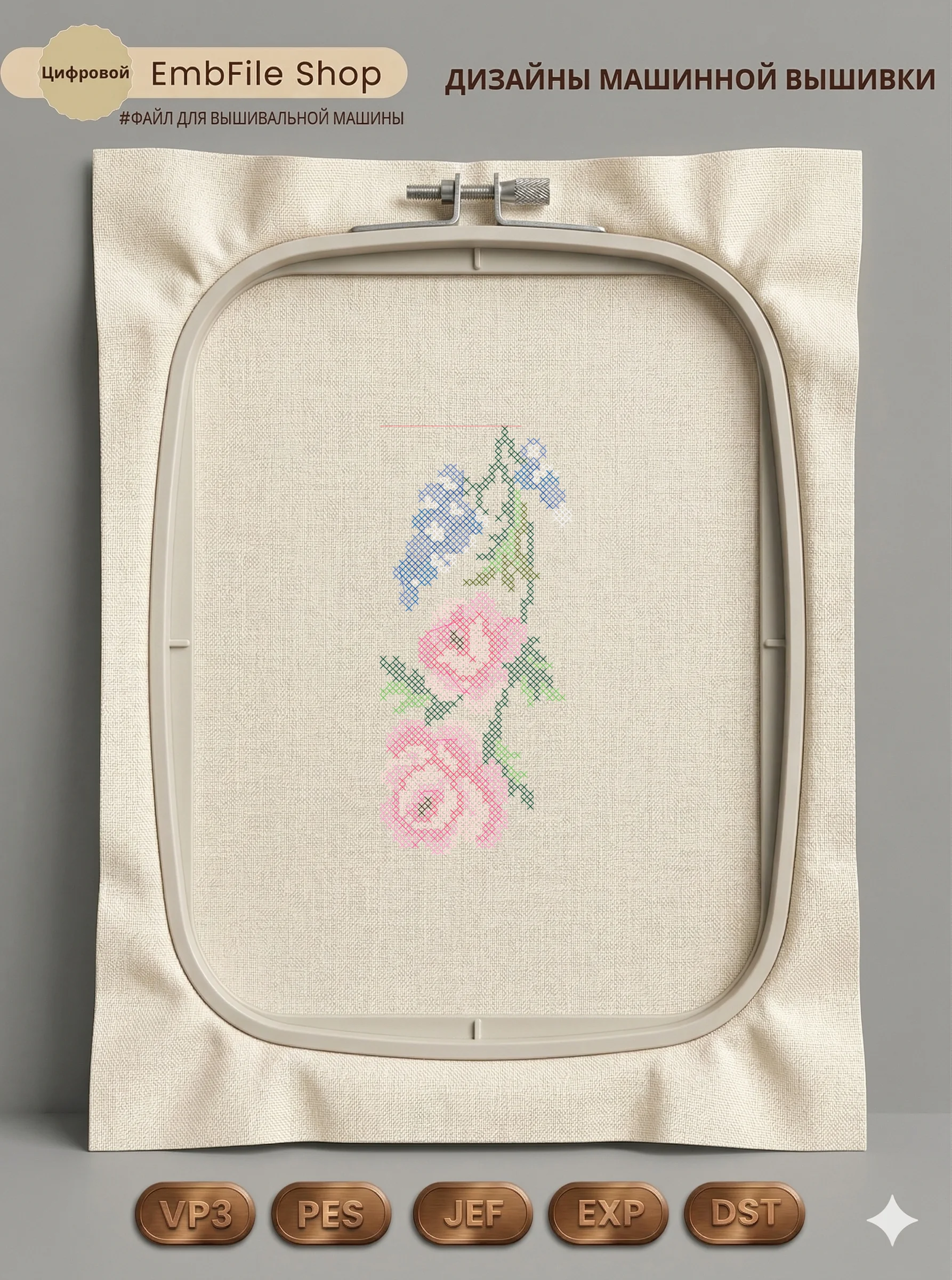 Это цифровой файл для вышивальной машины, а не физический товар (нашивка). Для работы с файлом вам необходимо иметь вышивальную машину и способ передачи файла на устройство (USB-флешка и т.д.).