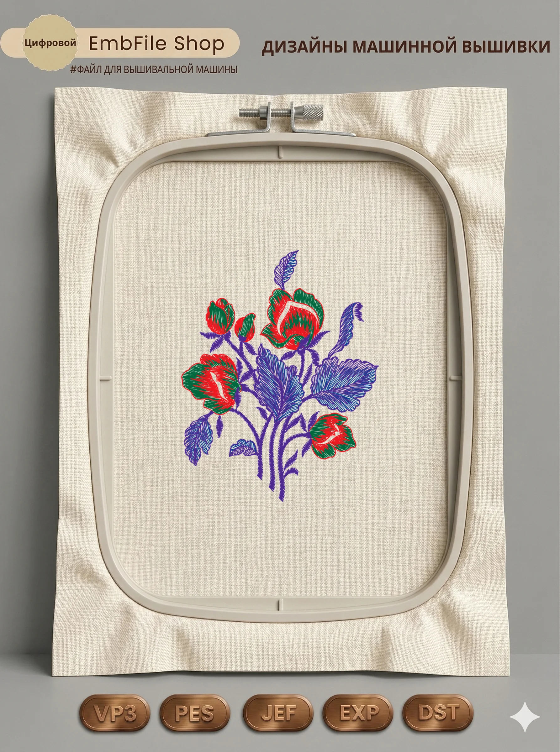 Это цифровой файл для вышивальной машины, а не физический товар (нашивка). Для работы с файлом вам необходимо иметь вышивальную машину и способ передачи файла на устройство (USB-флешка и т.д.).