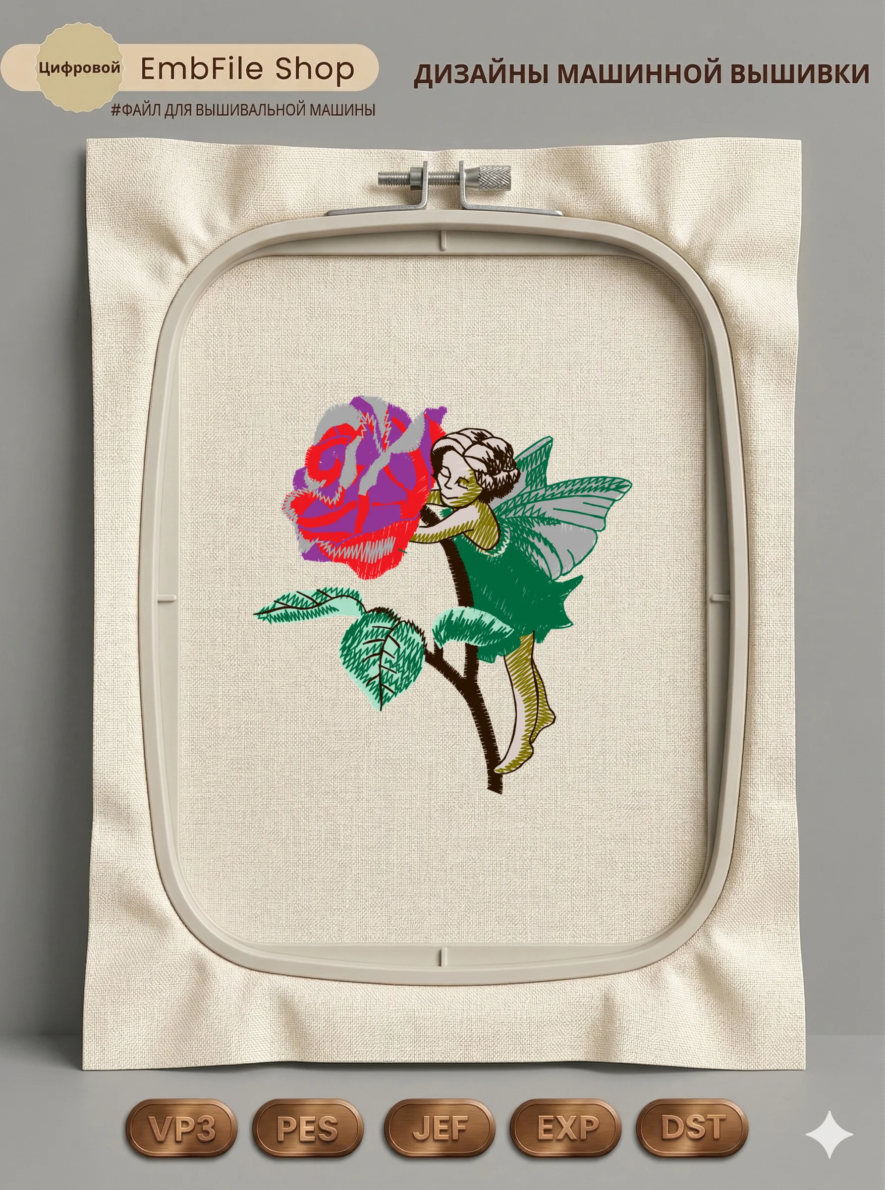 Это цифровой файл для вышивальной машины, а не физический товар (нашивка). Для работы с файлом вам необходимо иметь вышивальную машину и способ передачи файла на устройство (USB-флешка и т.д.).