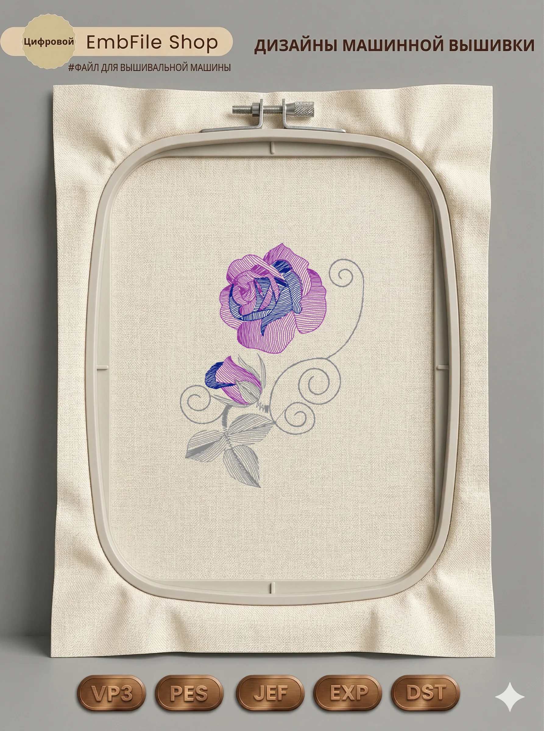 Это цифровой файл для вышивальной машины, а не физический товар (нашивка). Для работы с файлом вам необходимо иметь вышивальную машину и способ передачи файла на устройство (USB-флешка и т.д.).