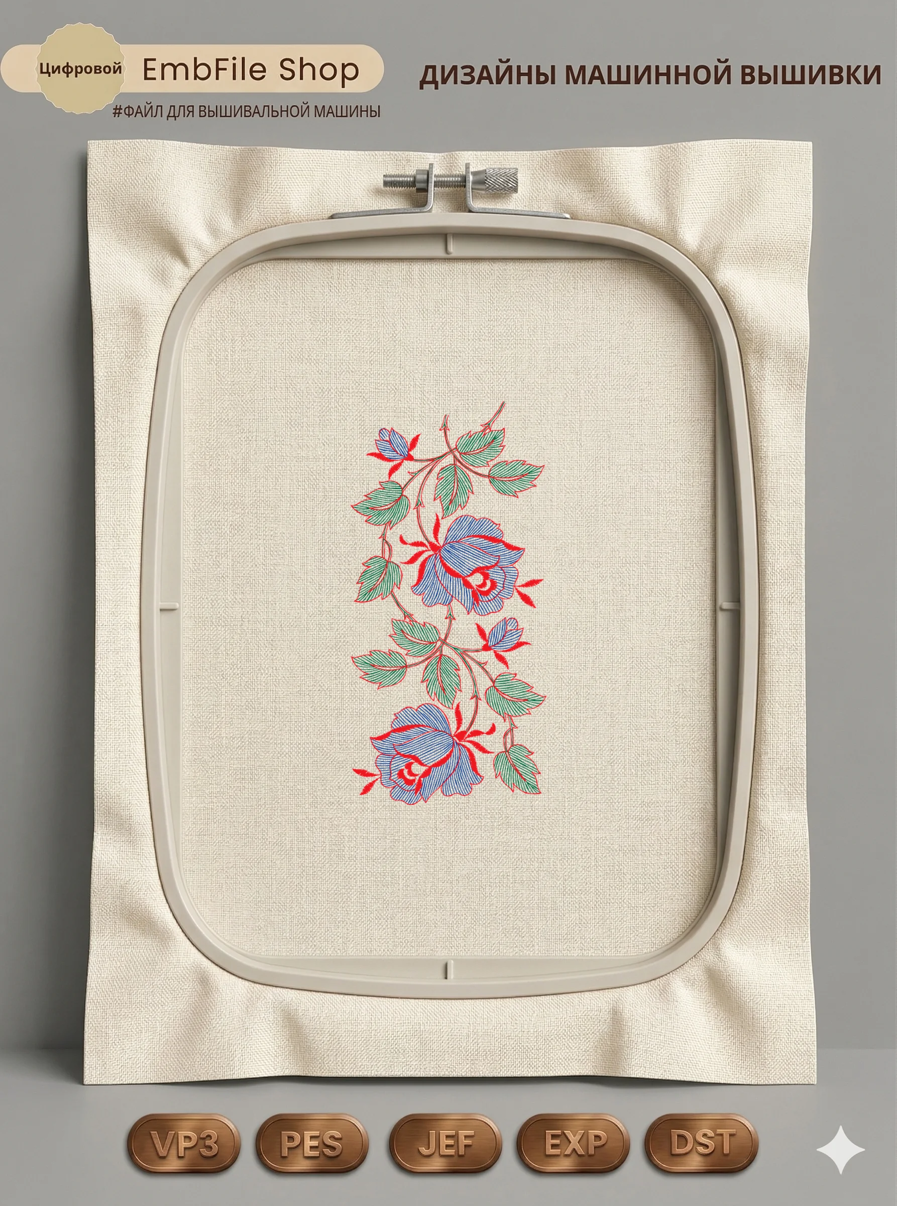 Это цифровой файл для вышивальной машины, а не физический товар (нашивка). Для работы с файлом вам необходимо иметь вышивальную машину и способ передачи файла на устройство (USB-флешка и т.д.).