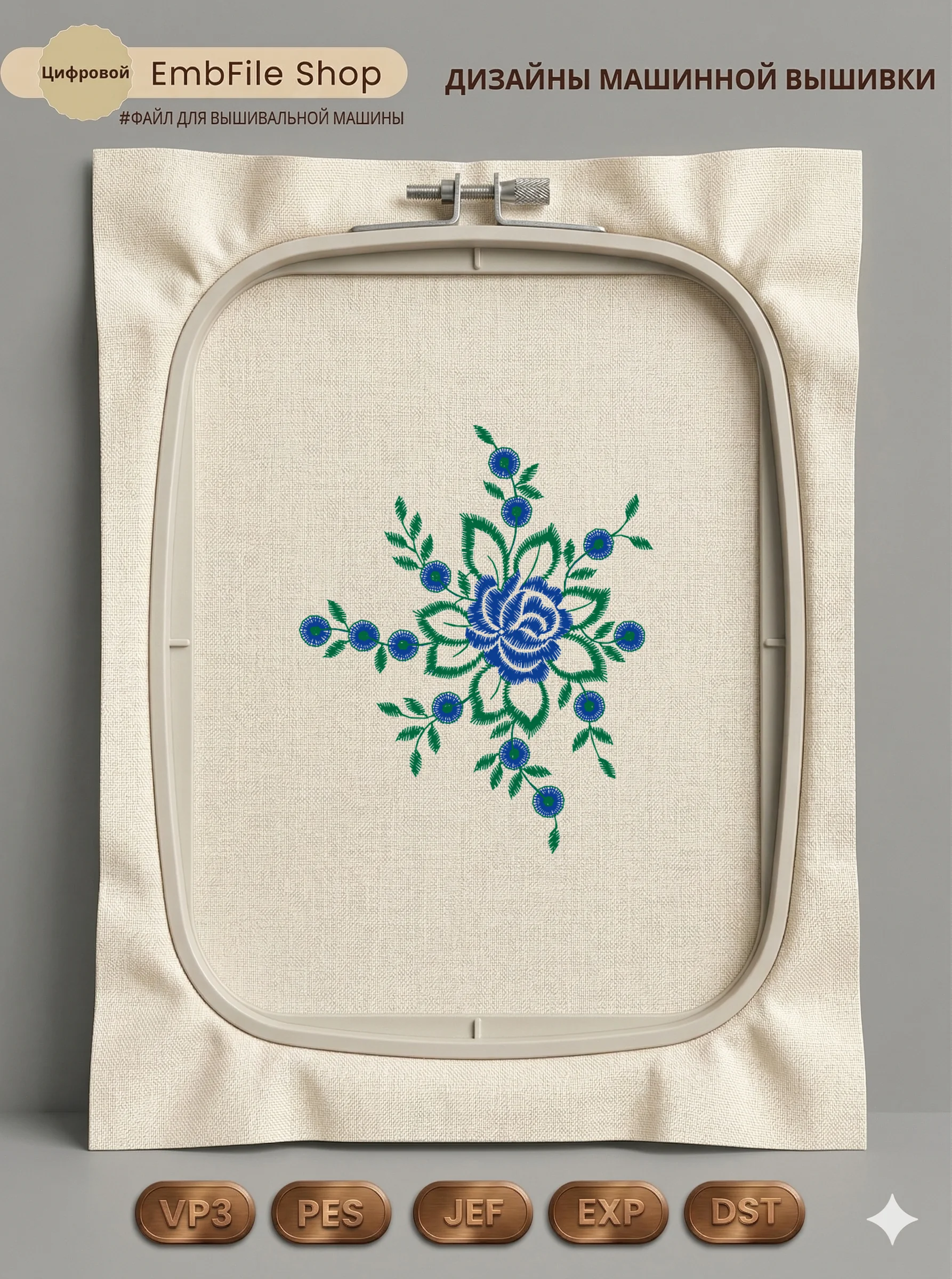 Это цифровой файл для вышивальной машины, а не физический товар (нашивка). Для работы с файлом вам необходимо иметь вышивальную машину и способ передачи файла на устройство (USB-флешка и т.д.).