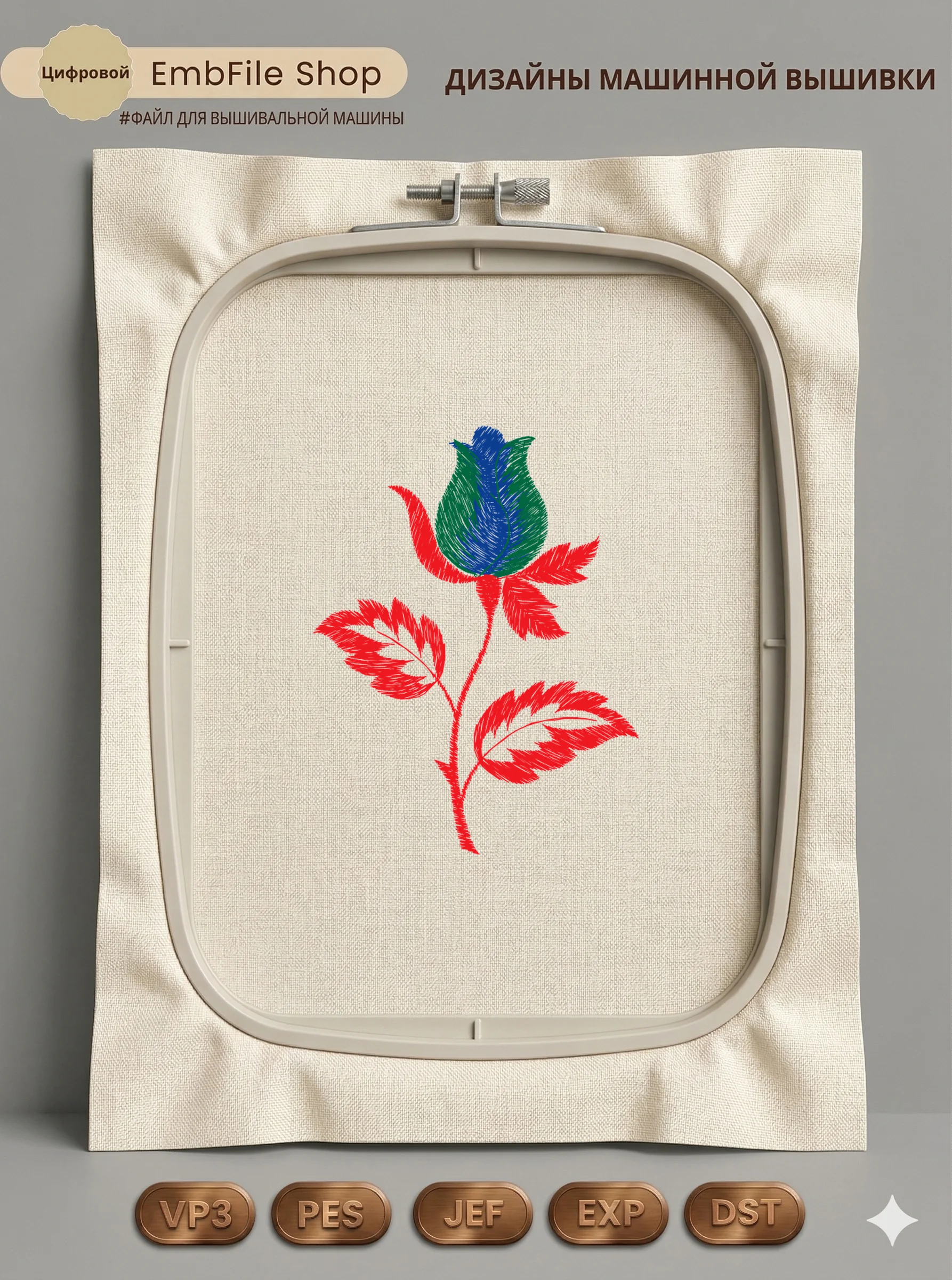 Это цифровой файл для вышивальной машины, а не физический товар (нашивка). Для работы с файлом вам необходимо иметь вышивальную машину и способ передачи файла на устройство (USB-флешка и т.д.).