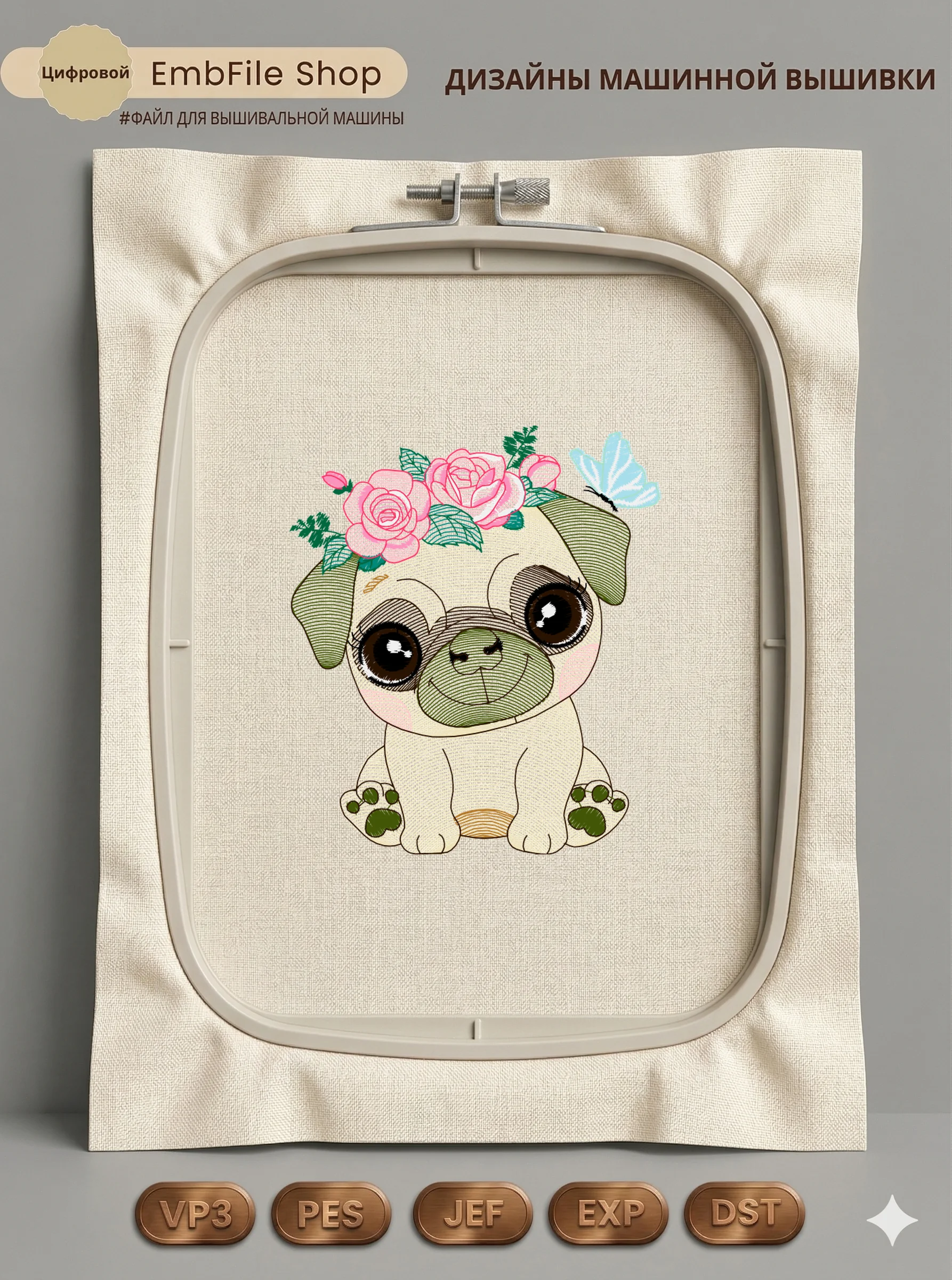Это цифровой файл для вышивальной машины, а не физический товар (нашивка). Для работы с файлом вам необходимо иметь вышивальную машину и способ передачи файла на устройство (USB-флешка и т.д.).
