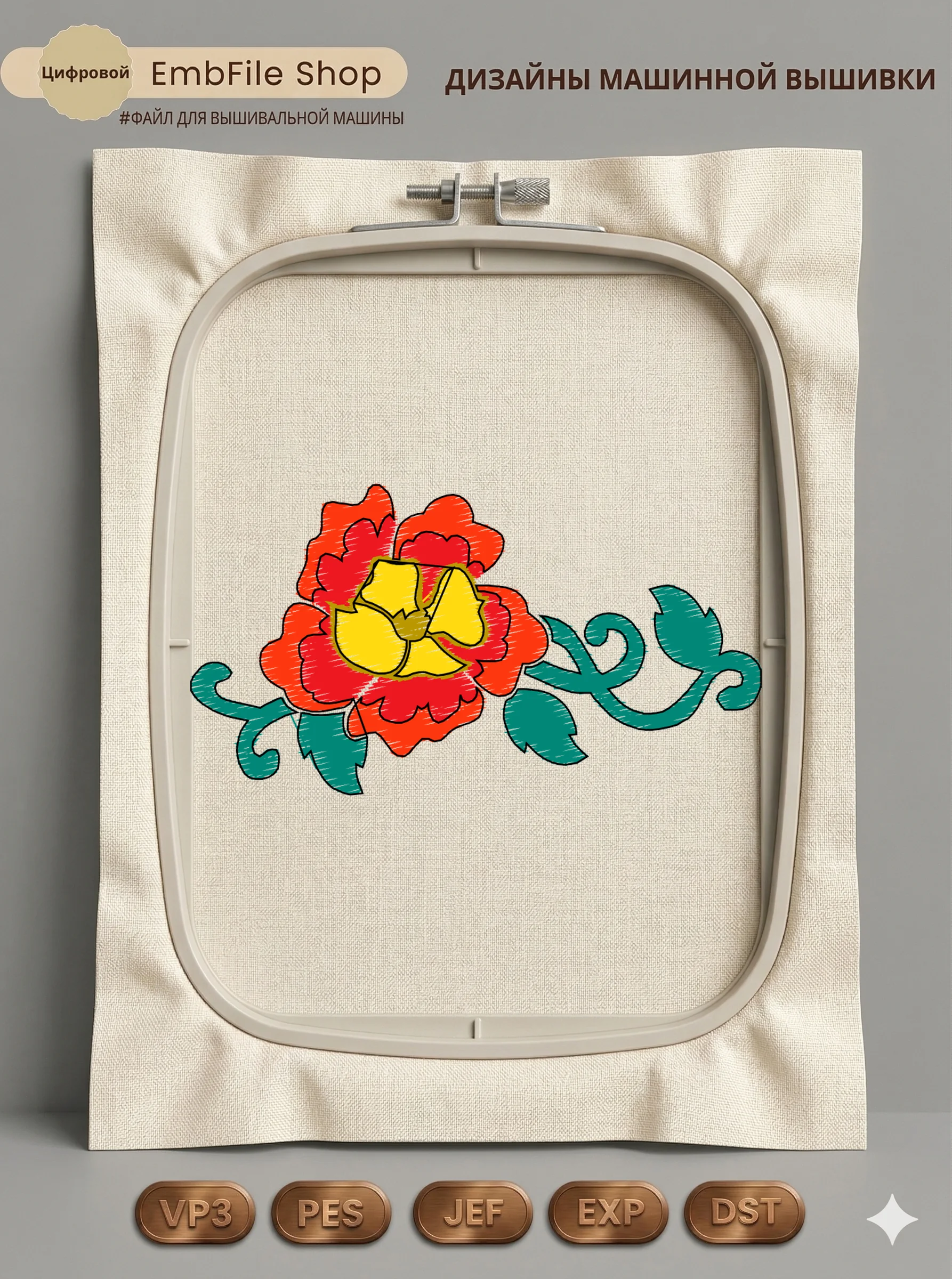 Это цифровой файл для вышивальной машины, а не физический товар (нашивка). Для работы с файлом вам необходимо иметь вышивальную машину и способ передачи файла на устройство (USB-флешка и т.д.).