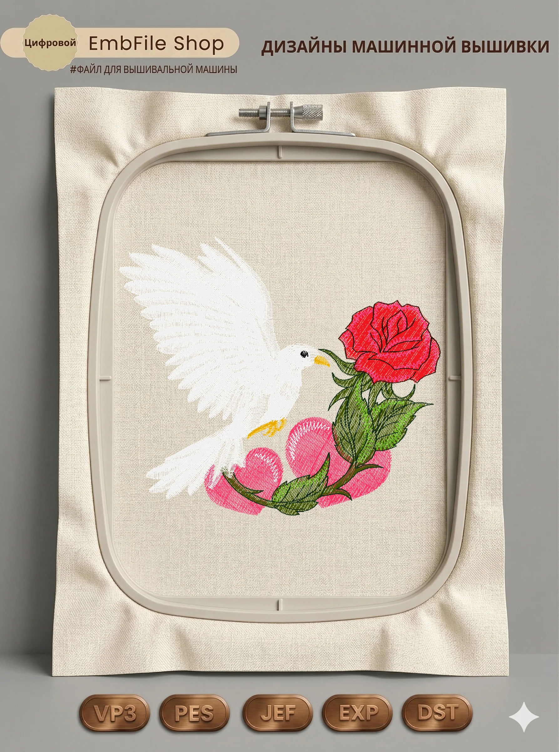 Это цифровой файл для вышивальной машины, а не физический товар (нашивка). Для работы с файлом вам необходимо иметь вышивальную машину и способ передачи файла на устройство (USB-флешка и т.д.).
