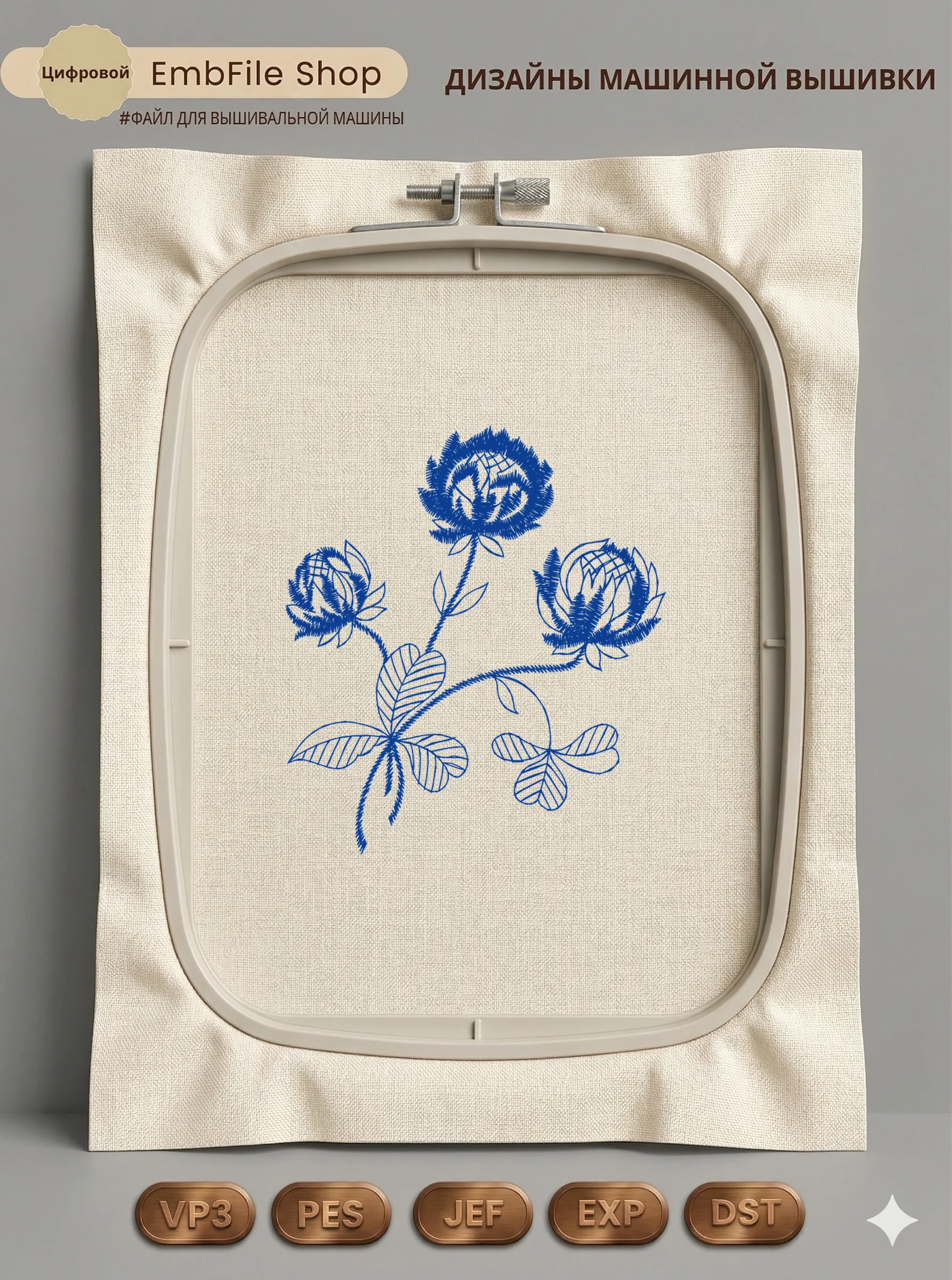 Это цифровой файл для вышивальной машины, а не физический товар (нашивка). Для работы с файлом вам необходимо иметь вышивальную машину и способ передачи файла на устройство (USB-флешка и т.д.).