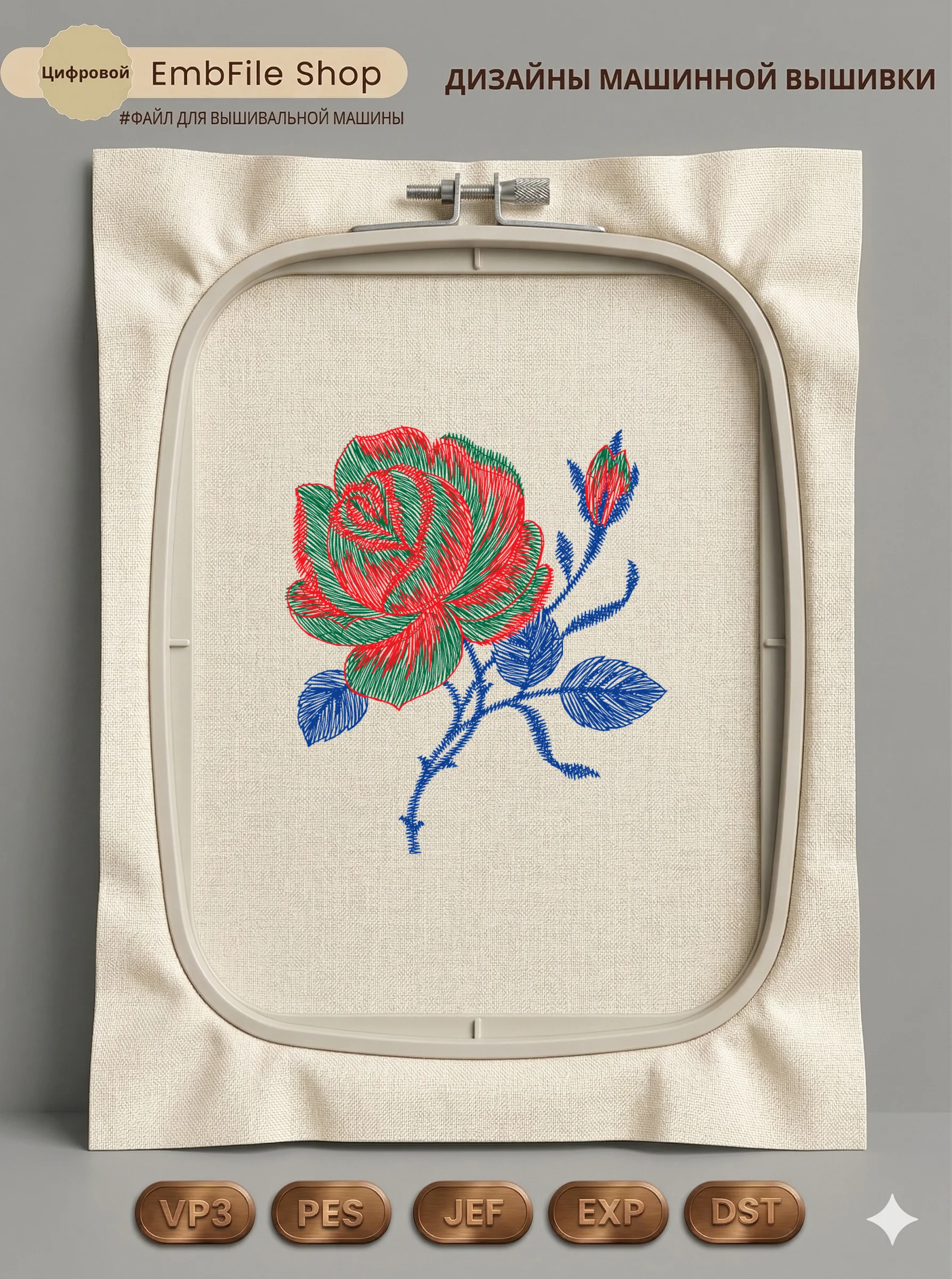 Это цифровой файл для вышивальной машины, а не физический товар (нашивка). Для работы с файлом вам необходимо иметь вышивальную машину и способ передачи файла на устройство (USB-флешка и т.д.).