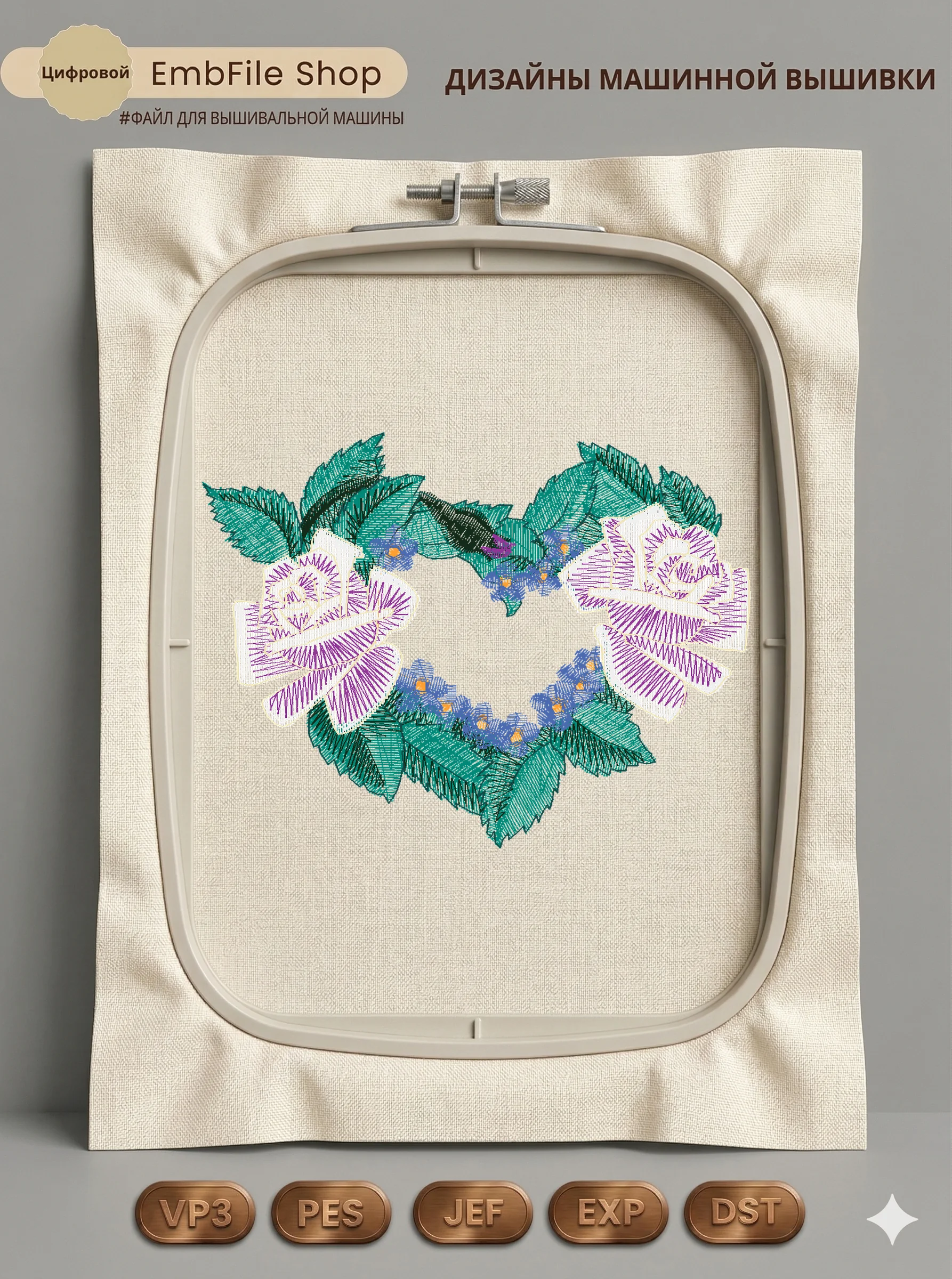 Это цифровой файл для вышивальной машины, а не физический товар (нашивка). Для работы с файлом вам необходимо иметь вышивальную машину и способ передачи файла на устройство (USB-флешка и т.д.).