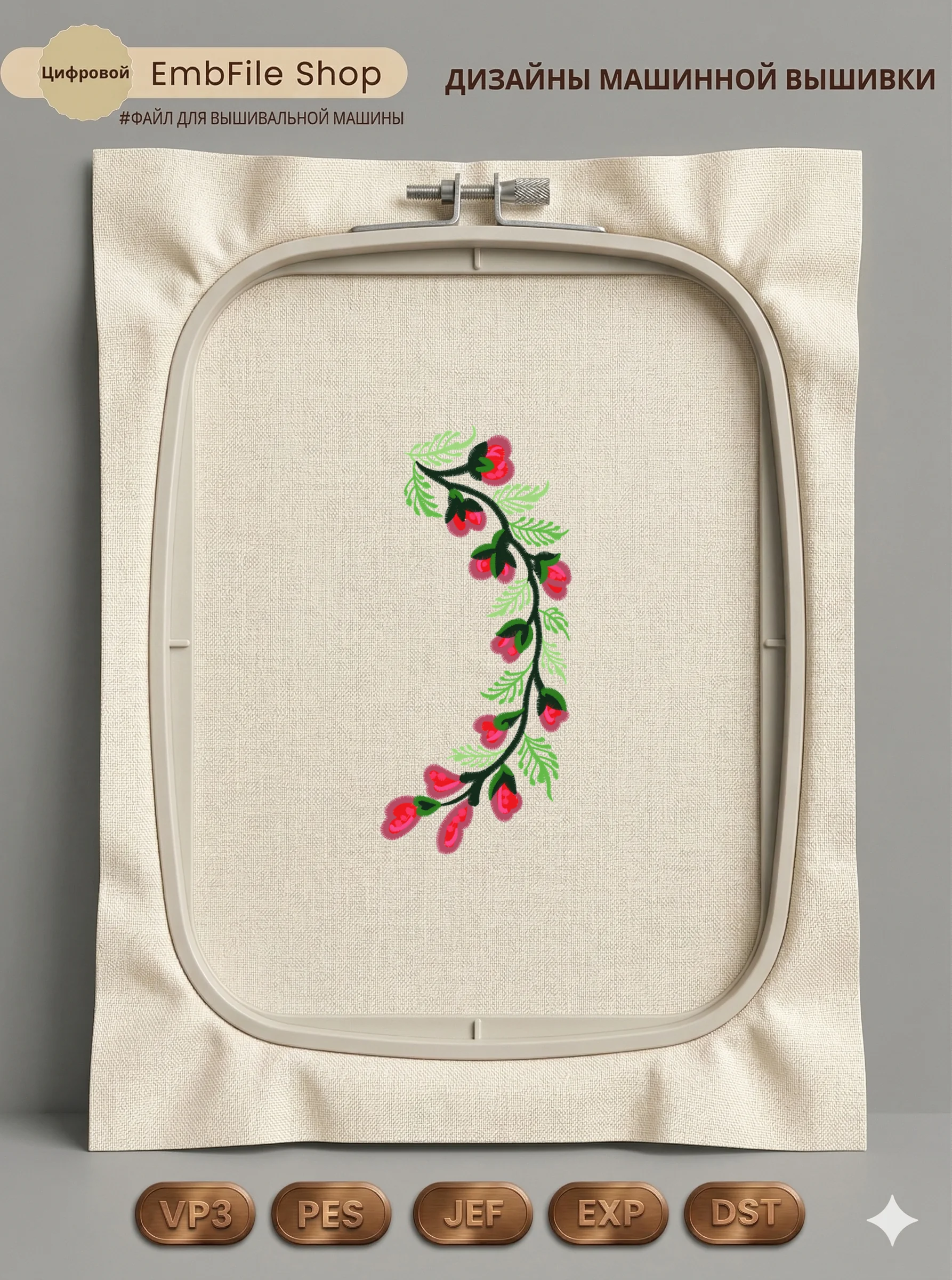 Это цифровой файл для вышивальной машины, а не физический товар (нашивка). Для работы с файлом вам необходимо иметь вышивальную машину и способ передачи файла на устройство (USB-флешка и т.д.).