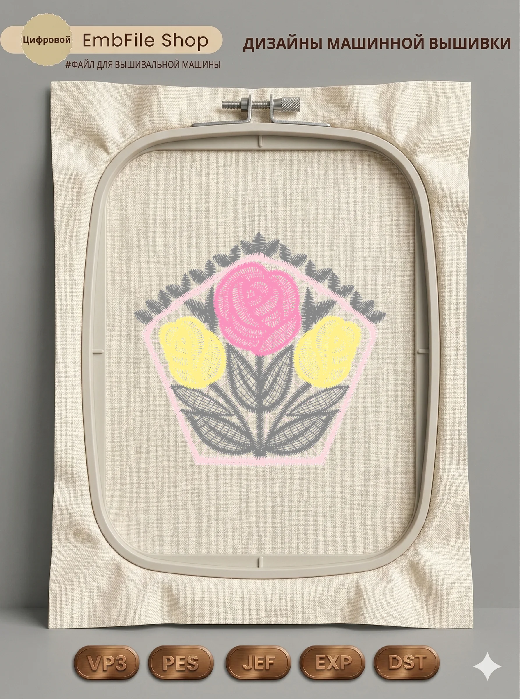 Это цифровой файл для вышивальной машины, а не физический товар (нашивка). Для работы с файлом вам необходимо иметь вышивальную машину и способ передачи файла на устройство (USB-флешка и т.д.).