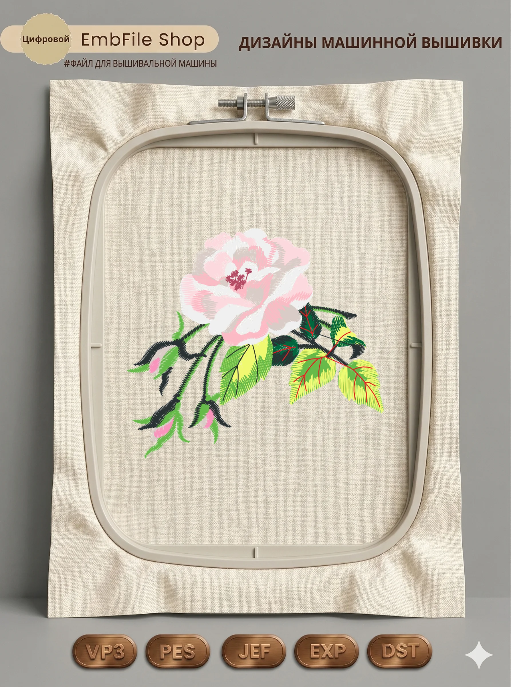 Это цифровой файл для вышивальной машины, а не физический товар (нашивка). Для работы с файлом вам необходимо иметь вышивальную машину и способ передачи файла на устройство (USB-флешка и т.д.).