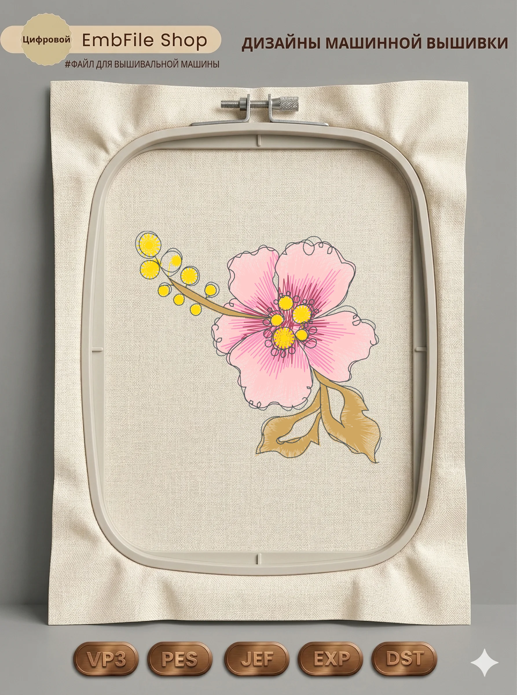 Это цифровой файл для вышивальной машины, а не физический товар (нашивка). Для работы с файлом вам необходимо иметь вышивальную машину и способ передачи файла на устройство (USB-флешка и т.д.).