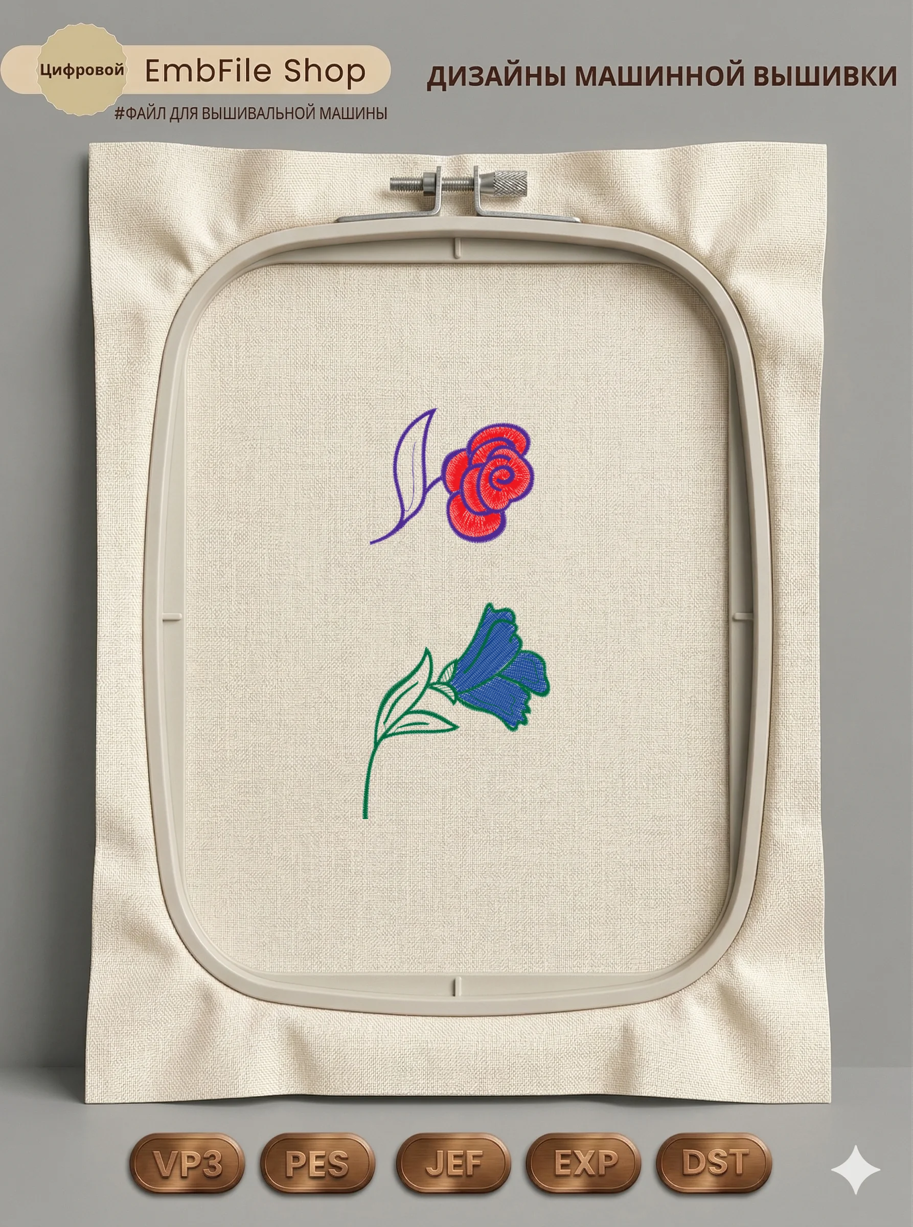 Это цифровой файл для вышивальной машины, а не физический товар (нашивка). Для работы с файлом вам необходимо иметь вышивальную машину и способ передачи файла на устройство (USB-флешка и т.д.).