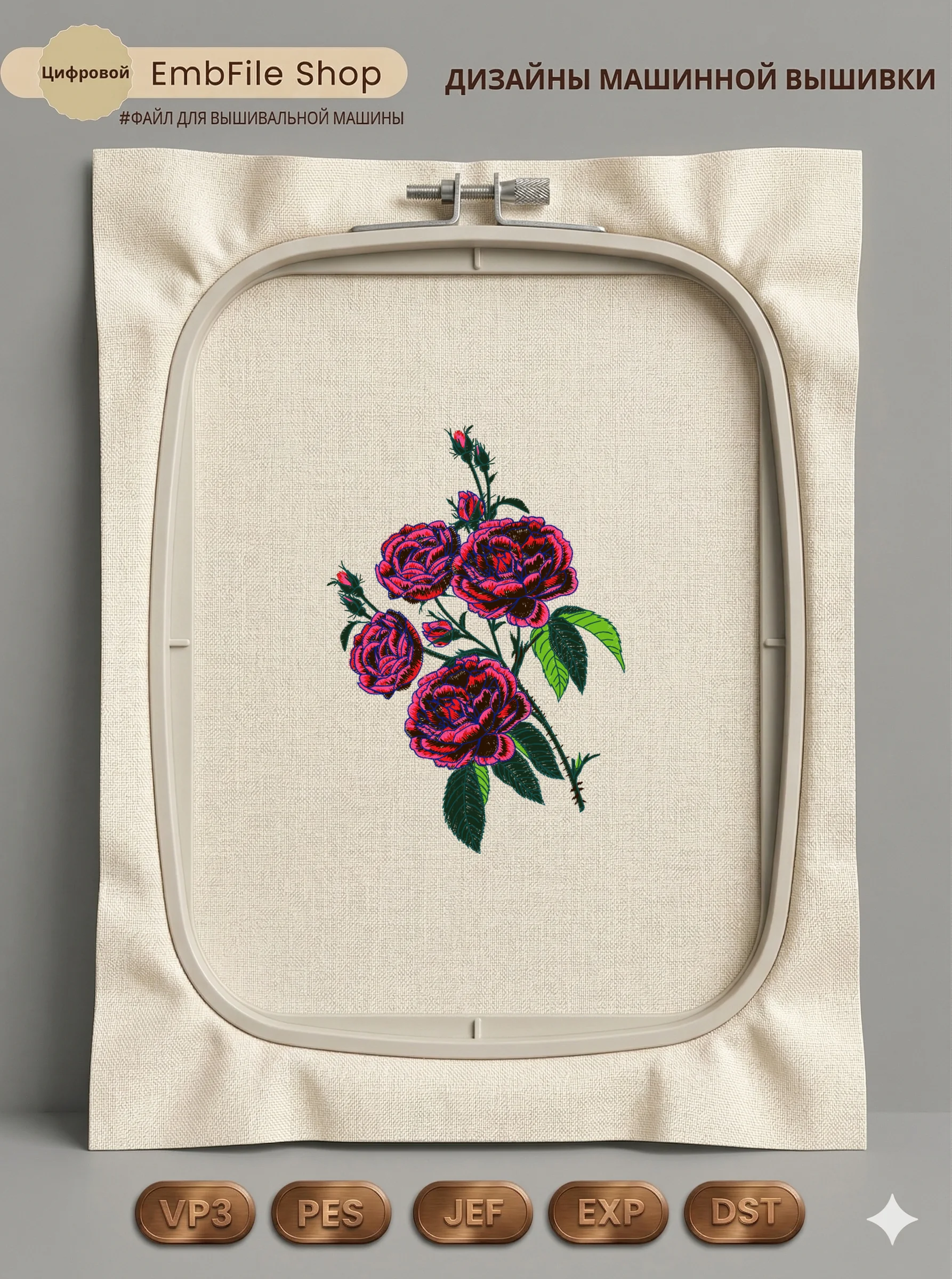Это цифровой файл для вышивальной машины, а не физический товар (нашивка). Для работы с файлом вам необходимо иметь вышивальную машину и способ передачи файла на устройство (USB-флешка и т.д.).