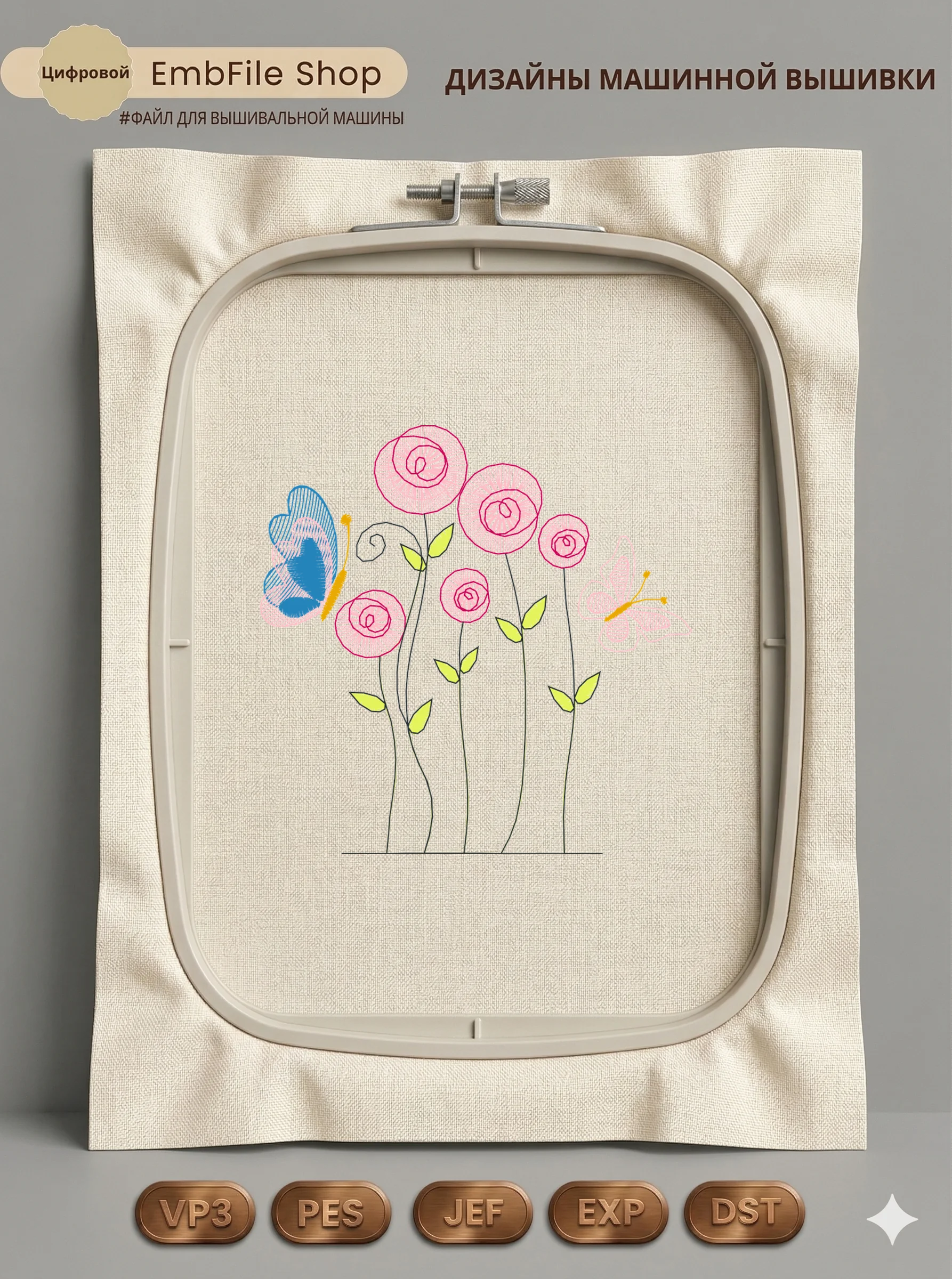 Дизайн протестирован на различных типах тканей, что гарантирует чистое и стабильное нанесение стежков.