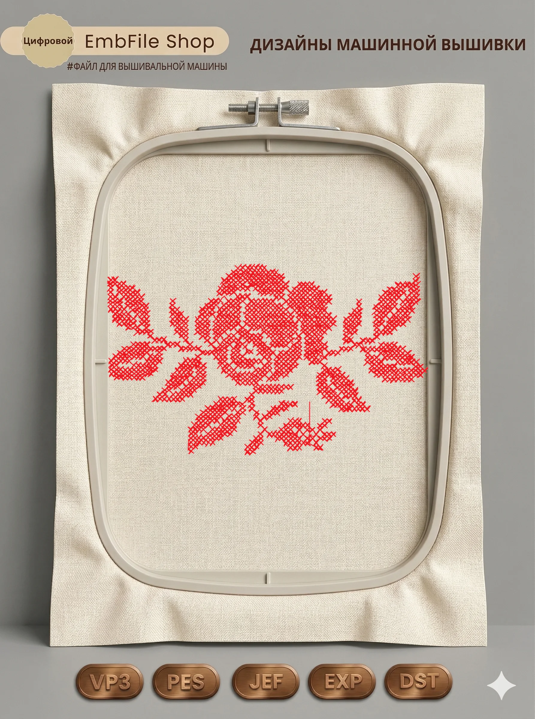 Это цифровой файл для вышивальной машины, а не физический товар (нашивка). Для работы с файлом вам необходимо иметь вышивальную машину и способ передачи файла на устройство (USB-флешка и т.д.).