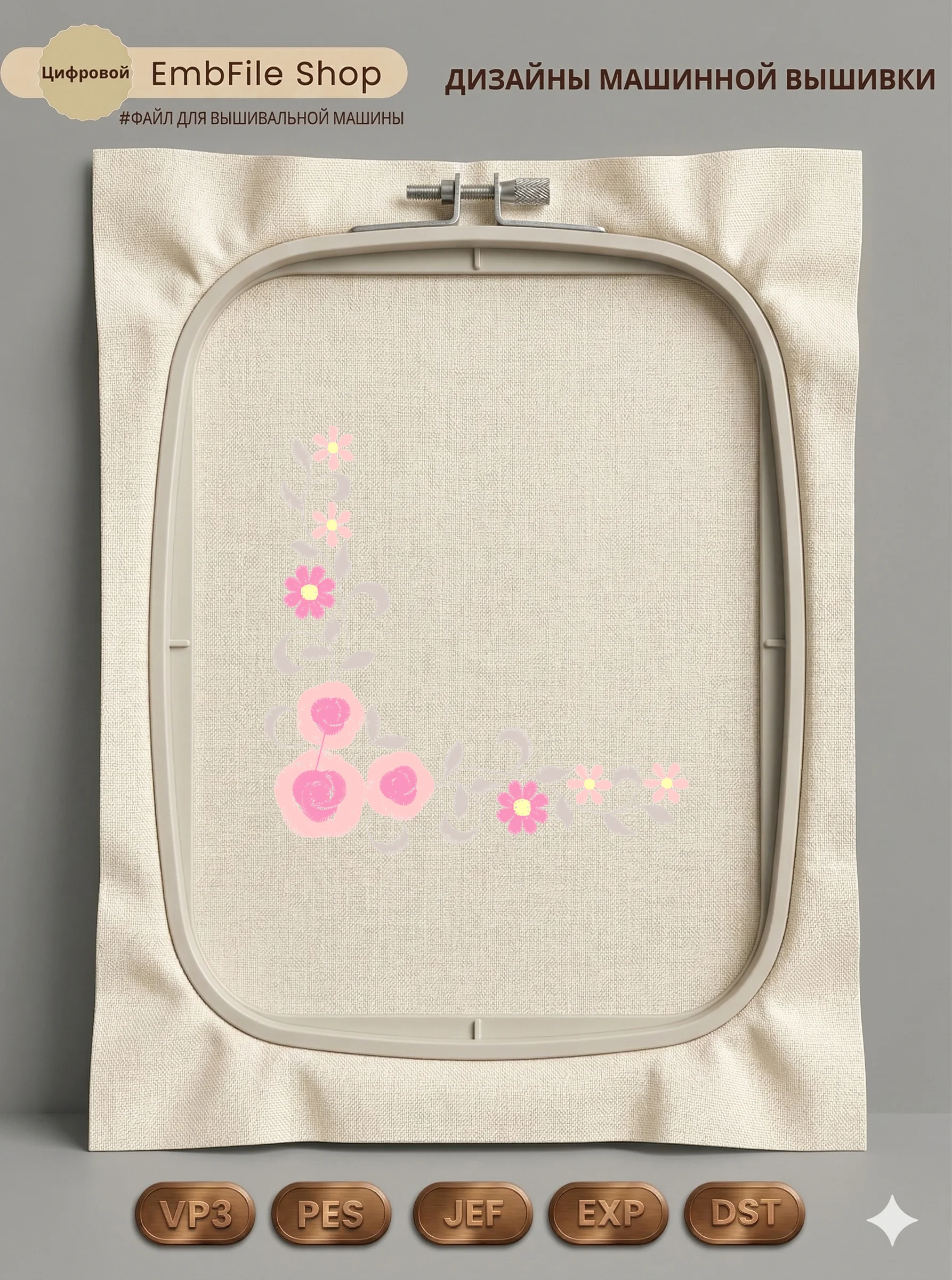 Это цифровой файл для вышивальной машины, а не физический товар (нашивка). Для работы с файлом вам необходимо иметь вышивальную машину и способ передачи файла на устройство (USB-флешка и т.д.).