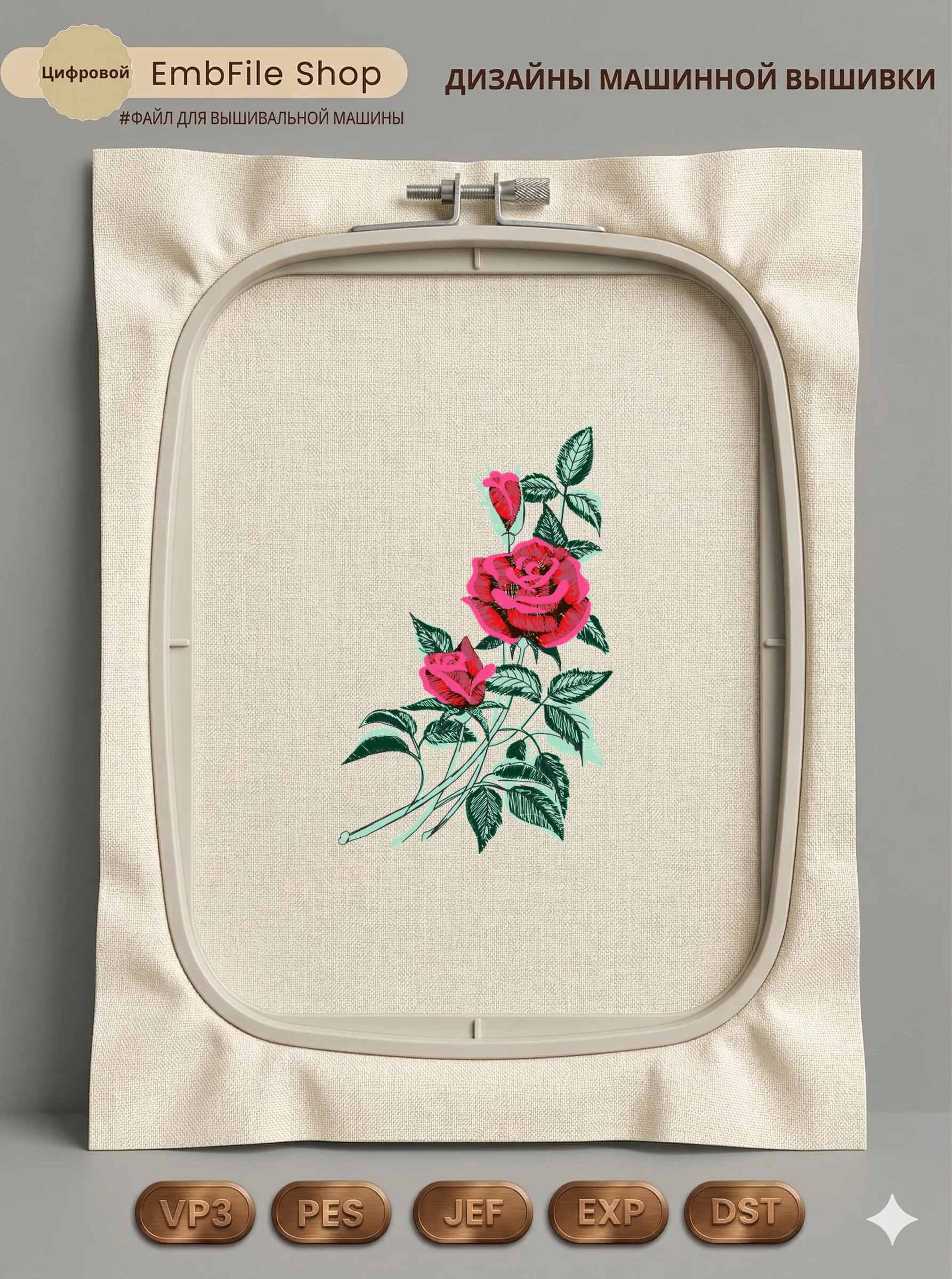Это цифровой файл для вышивальной машины, а не физический товар (нашивка). Для работы с файлом вам необходимо иметь вышивальную машину и способ передачи файла на устройство (USB-флешка и т.д.).