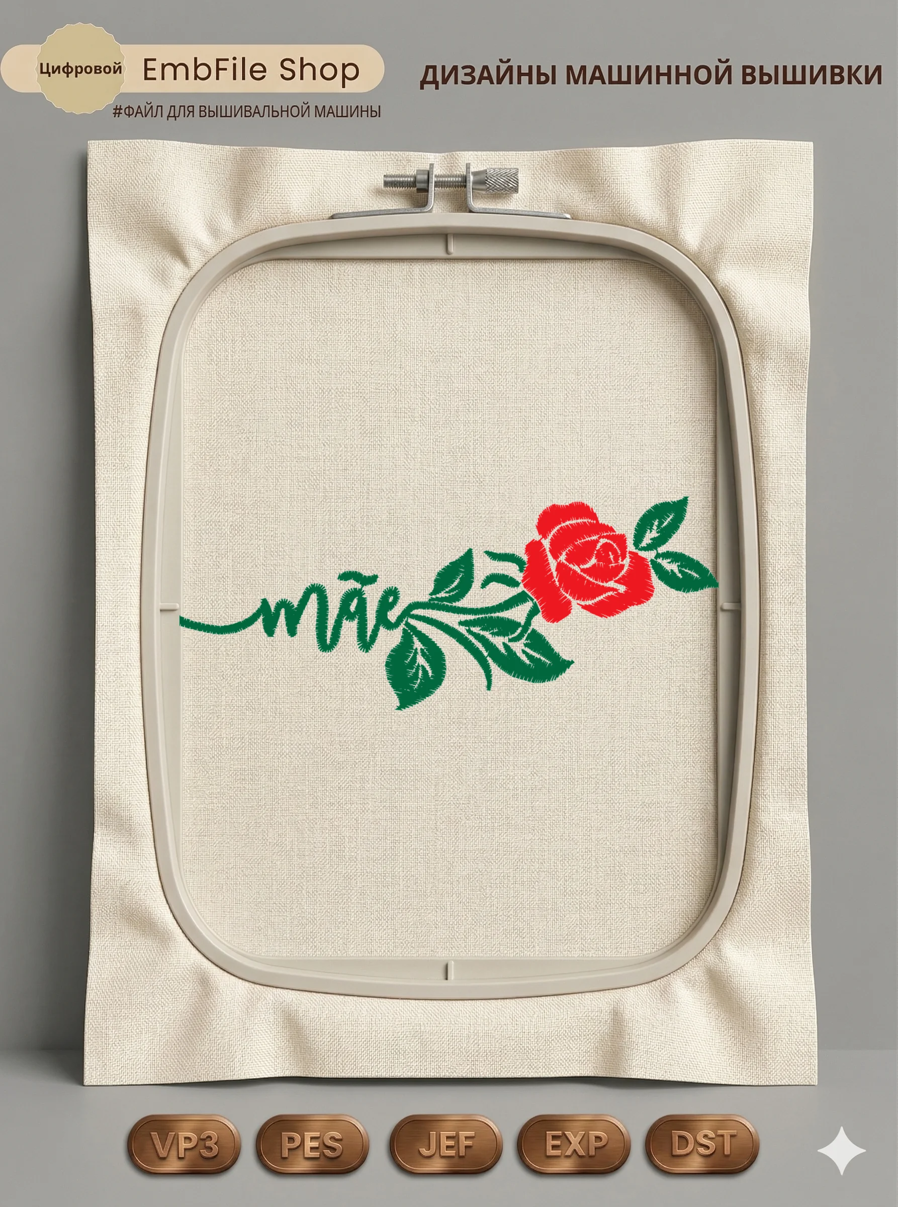 Это цифровой файл для вышивальной машины, а не физический товар (нашивка). Для работы с файлом вам необходимо иметь вышивальную машину и способ передачи файла на устройство (USB-флешка и т.д.).