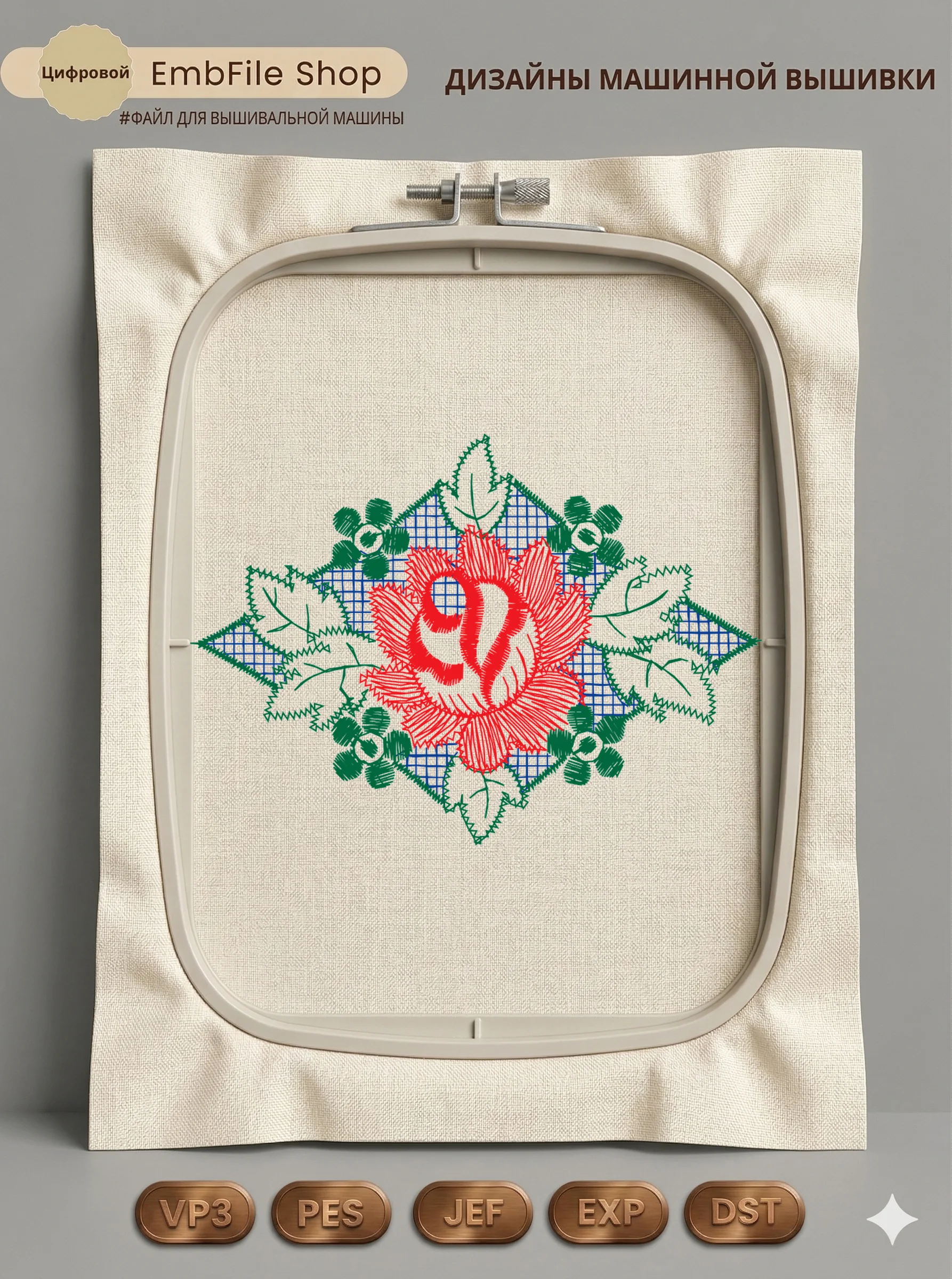 Дизайн протестирован на различных типах тканей, что гарантирует чистое и стабильное нанесение стежков.