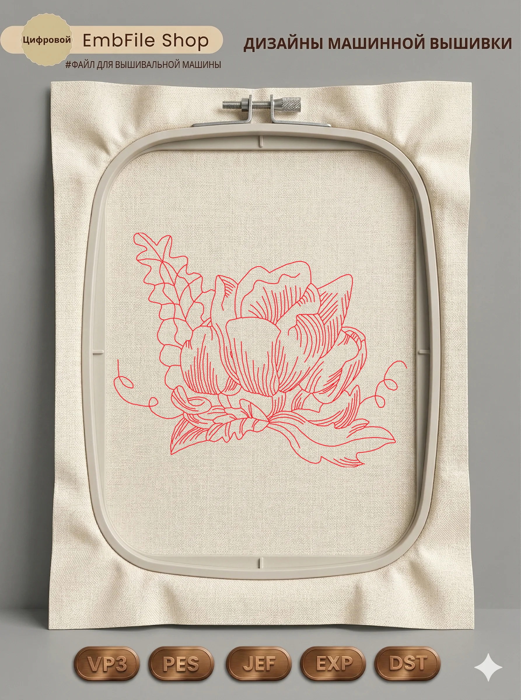 Это цифровой файл для вышивальной машины, а не физический товар (нашивка). Для работы с файлом вам необходимо иметь вышивальную машину и способ передачи файла на устройство (USB-флешка и т.д.).