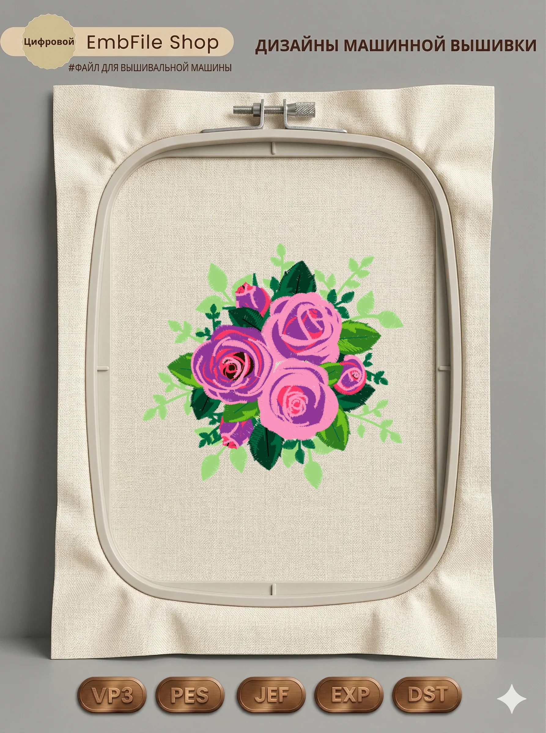 Это цифровой файл для вышивальной машины, а не физический товар (нашивка). Для работы с файлом вам необходимо иметь вышивальную машину и способ передачи файла на устройство (USB-флешка и т.д.).