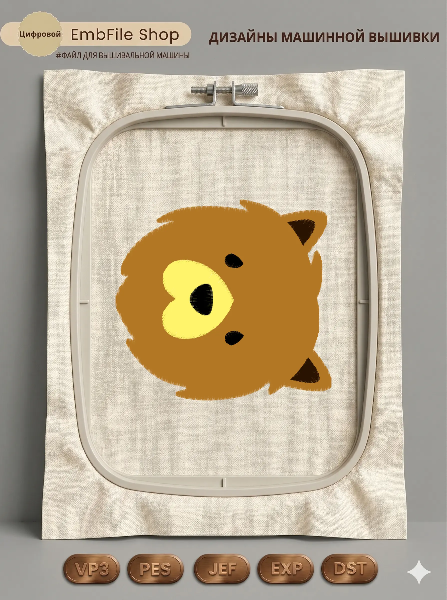 Это цифровой файл для вышивальной машины, а не физический товар (нашивка). Для работы с файлом вам необходимо иметь вышивальную машину и способ передачи файла на устройство (USB-флешка и т.д.).