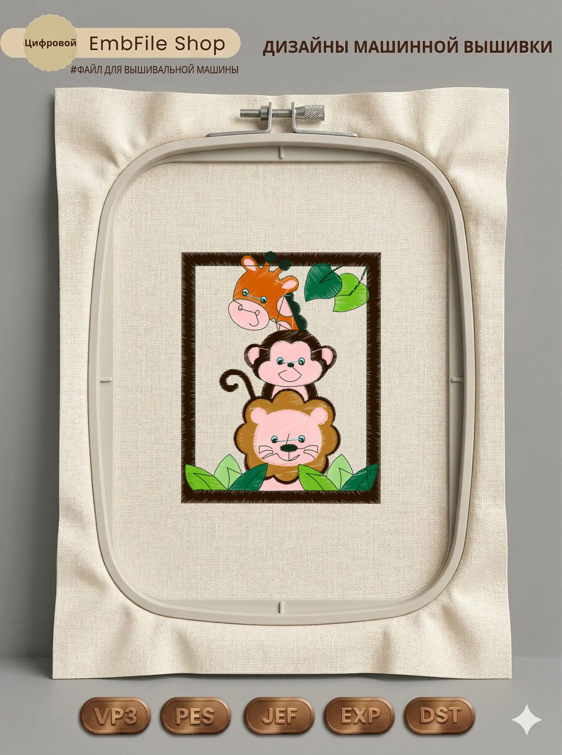 Дизайн машинной вышивки. Животные (Размер 103×130мм). Форматы: DST PES JEF VP3 EXP XXX . Стежков: 19242
