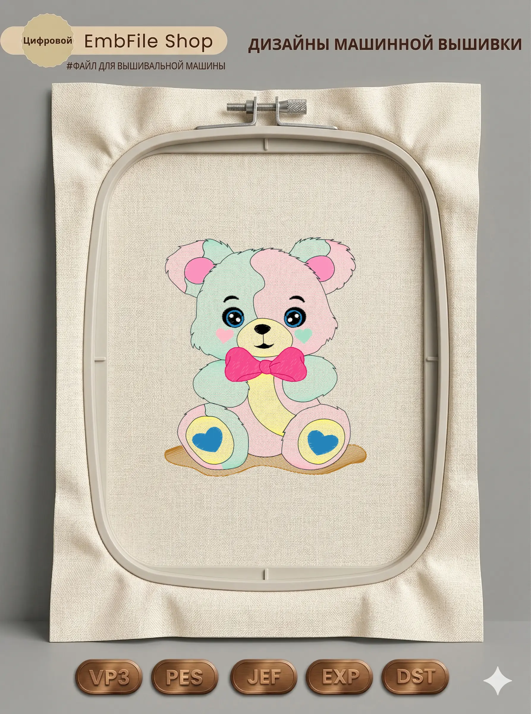 Это цифровой файл для вышивальной машины, а не физический товар (нашивка). Для работы с файлом вам необходимо иметь вышивальную машину и способ передачи файла на устройство (USB-флешка и т.д.).