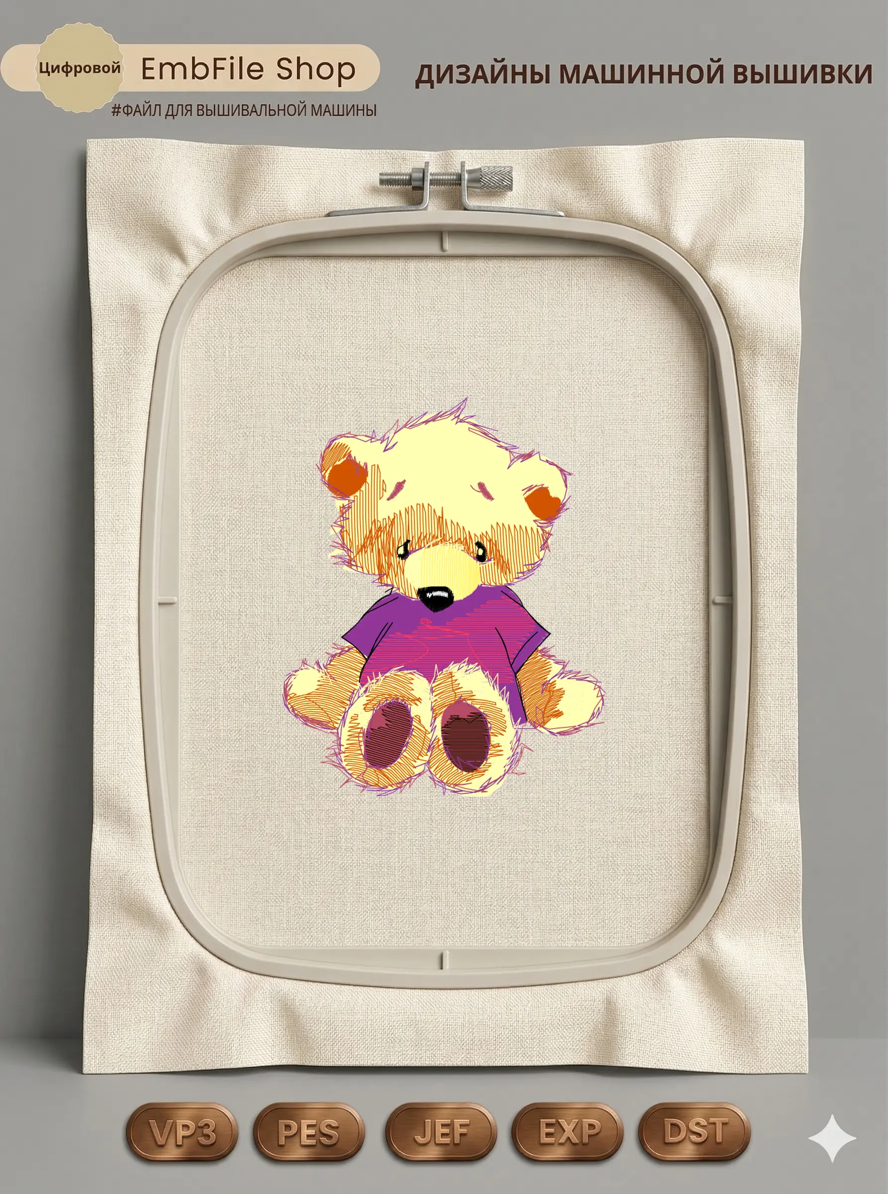 Это цифровой файл для вышивальной машины, а не физический товар (нашивка). Для работы с файлом вам необходимо иметь вышивальную машину и способ передачи файла на устройство (USB-флешка и т.д.).