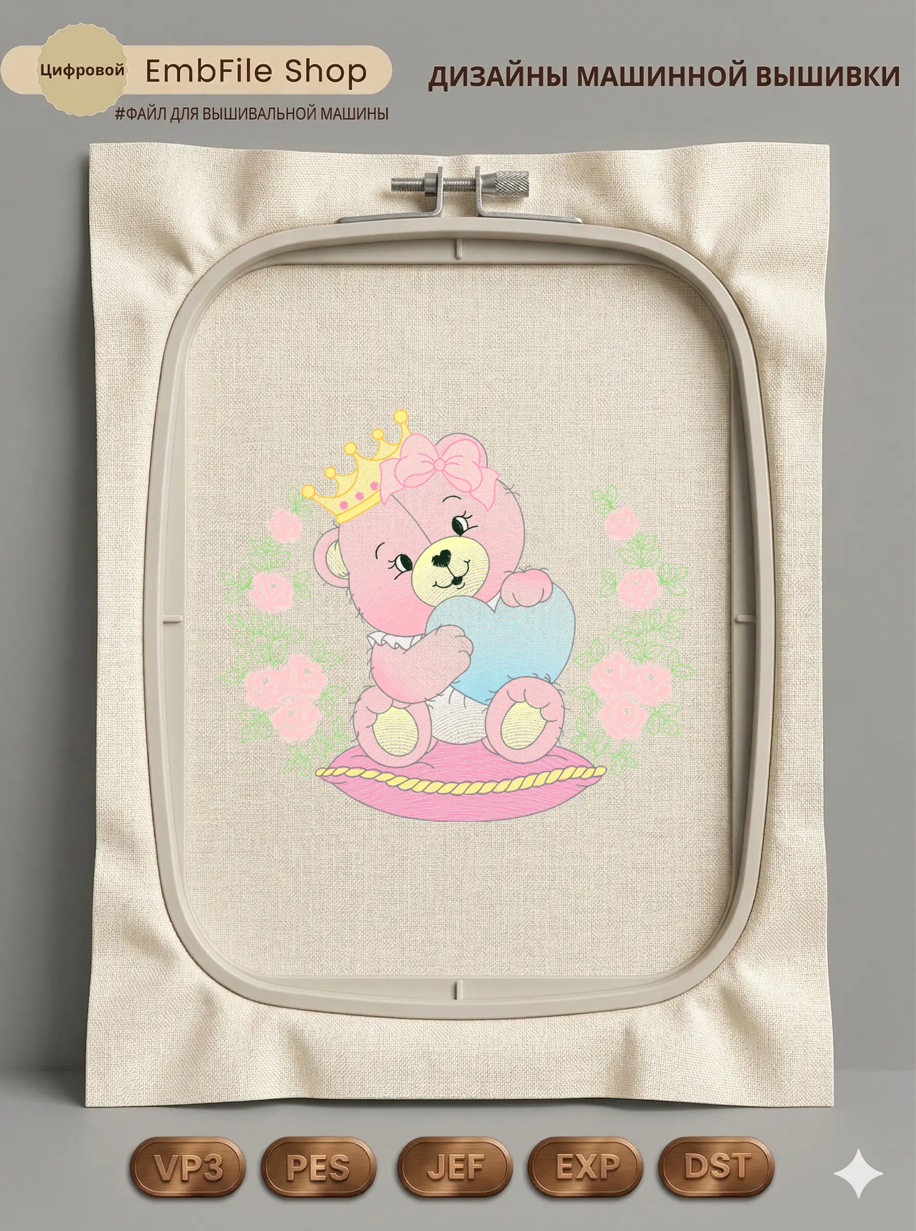 Дизайн протестирован на различных типах тканей, что гарантирует чистое и стабильное нанесение стежков.
