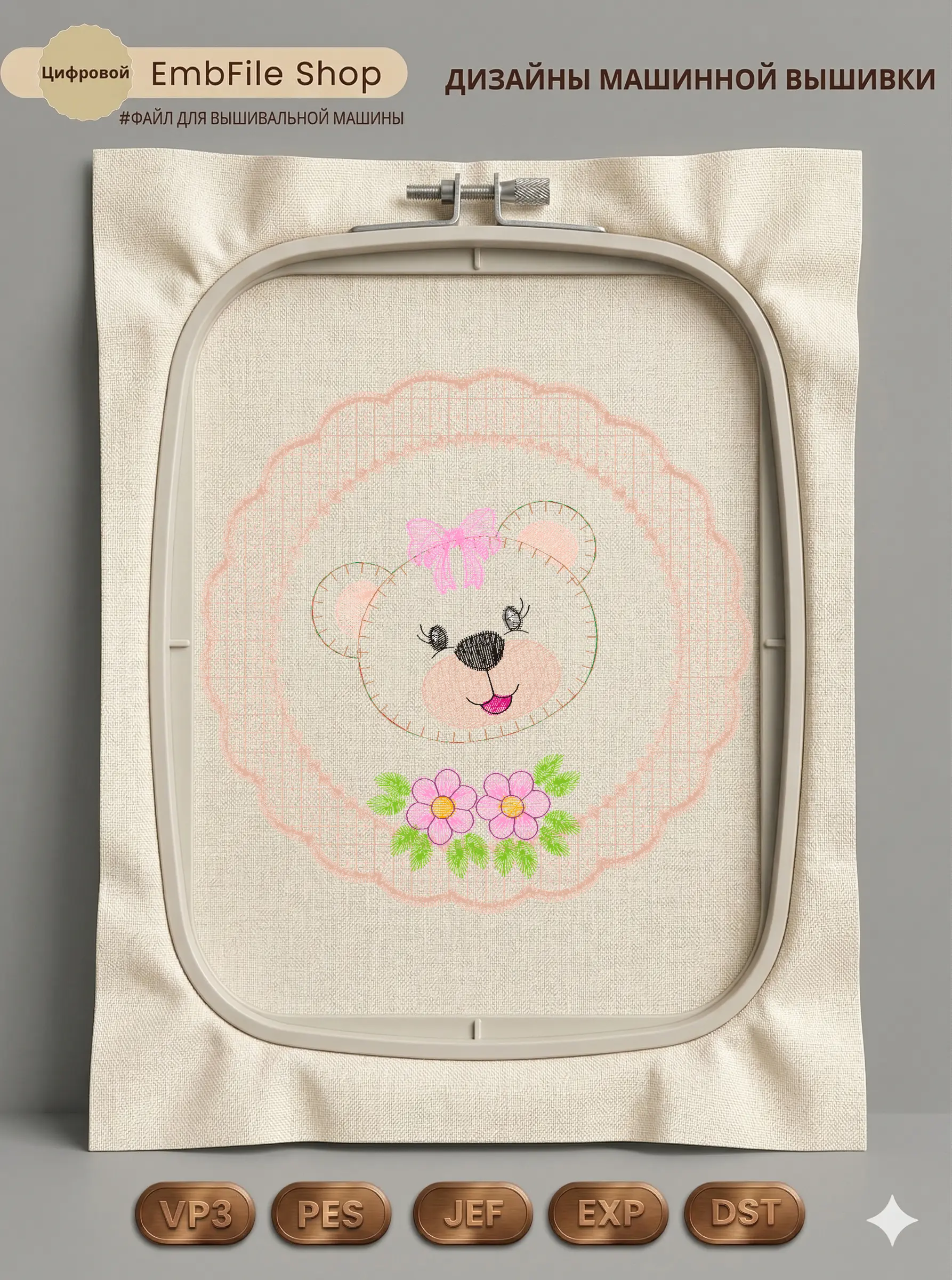 Дизайн протестирован на различных типах тканей, что гарантирует чистое и стабильное нанесение стежков.