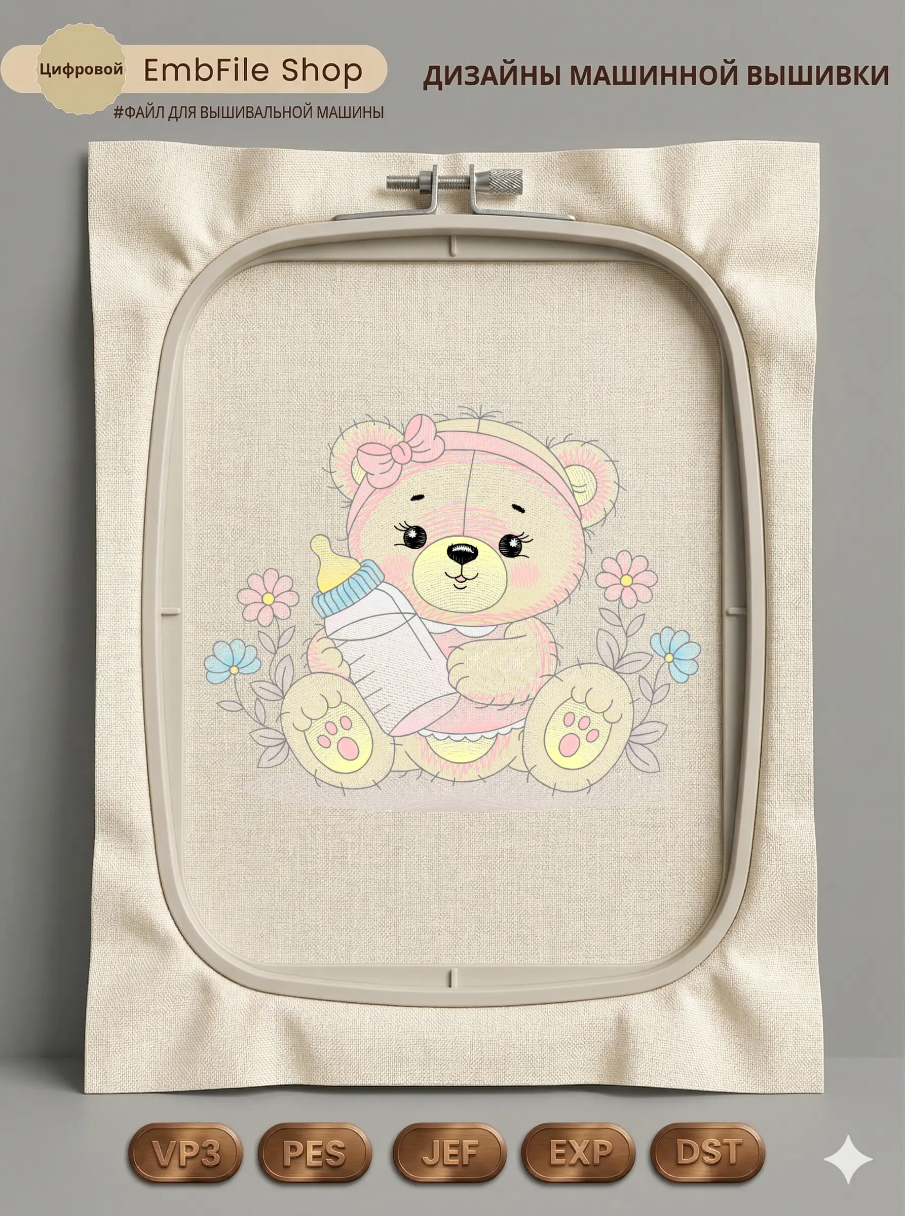 Дизайн протестирован на различных типах тканей, что гарантирует чистое и стабильное нанесение стежков.