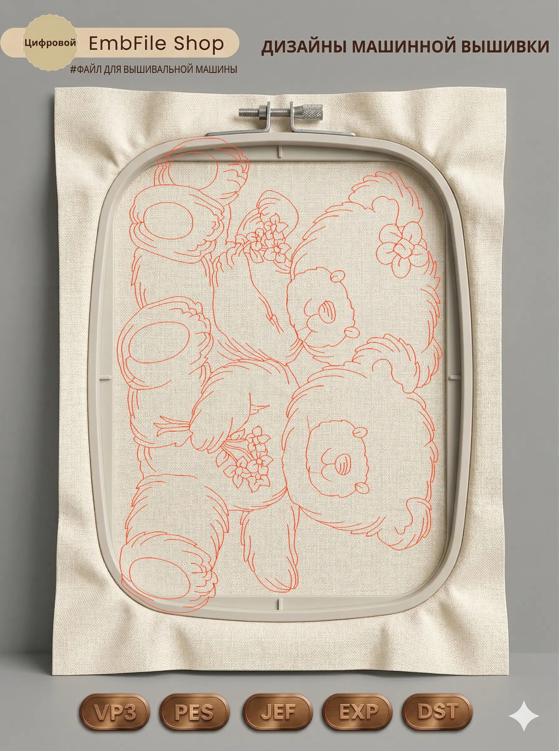 Это цифровой файл для вышивальной машины, а не физический товар (нашивка). Для работы с файлом вам необходимо иметь вышивальную машину и способ передачи файла на устройство (USB-флешка и т.д.).