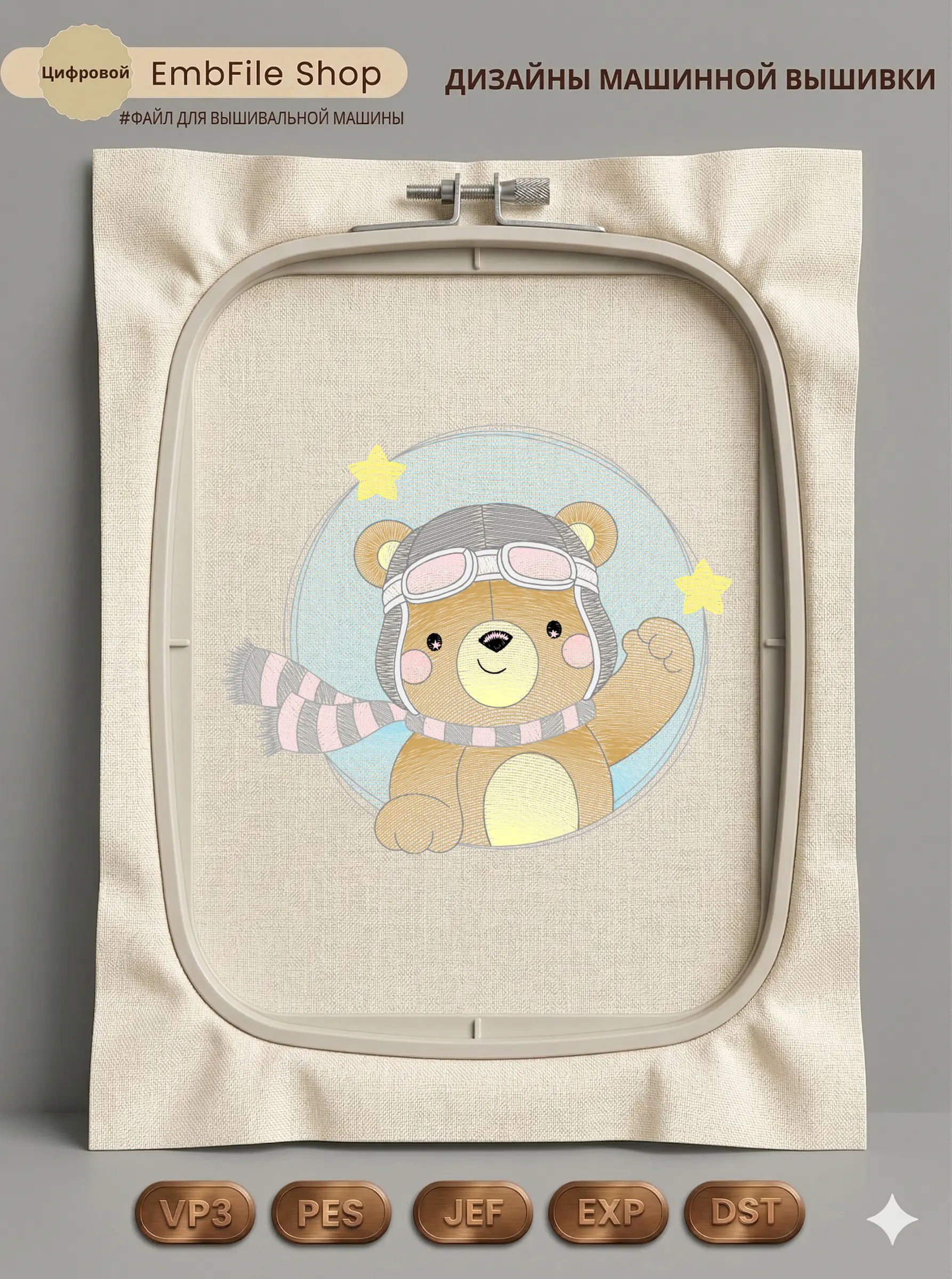 Это цифровой файл для вышивальной машины, а не физический товар (нашивка). Для работы с файлом вам необходимо иметь вышивальную машину и способ передачи файла на устройство (USB-флешка и т.д.).