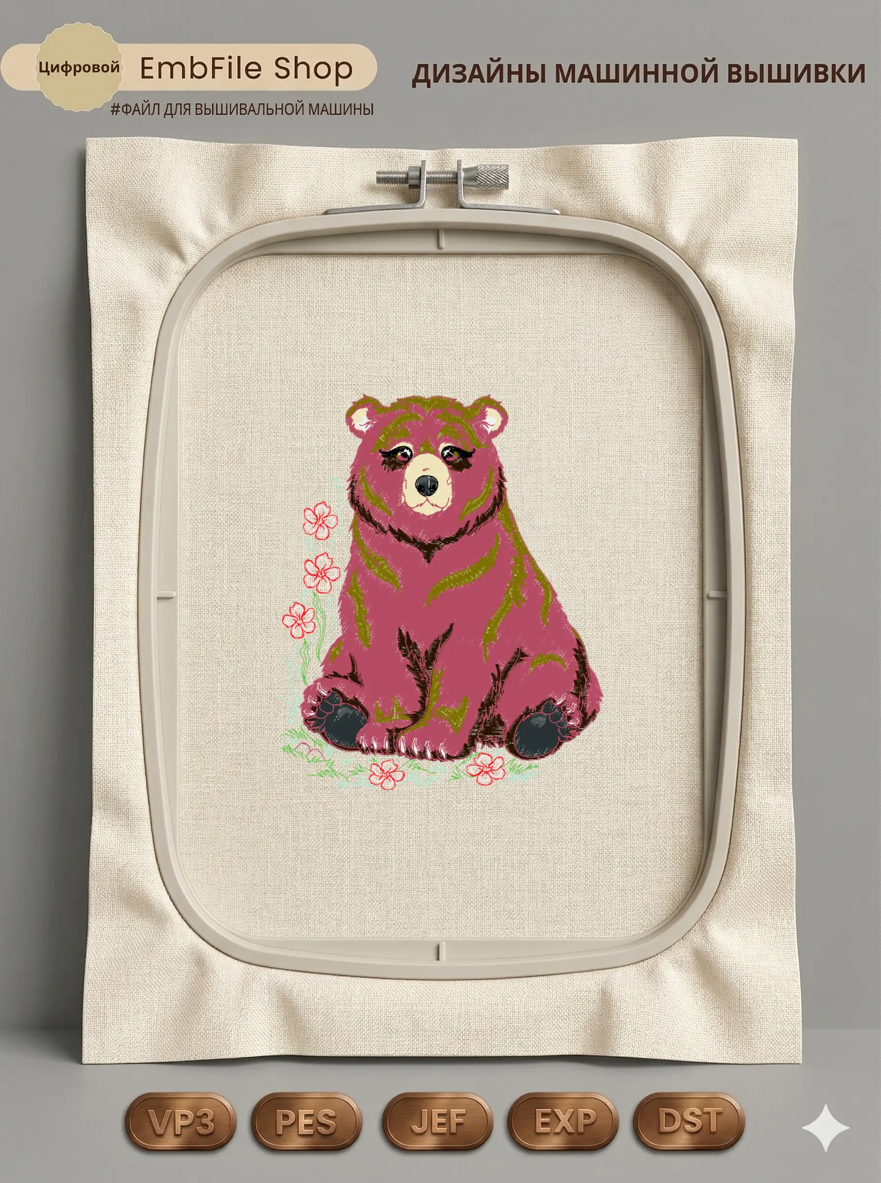 Это цифровой файл для вышивальной машины, а не физический товар (нашивка). Для работы с файлом вам необходимо иметь вышивальную машину и способ передачи файла на устройство (USB-флешка и т.д.).