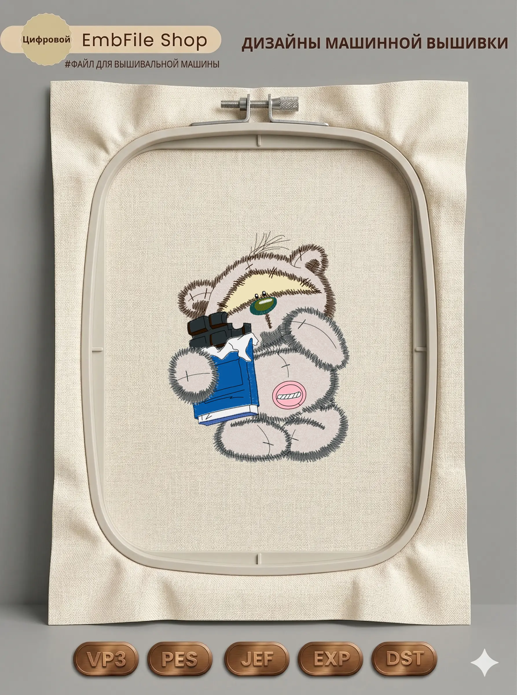 Это цифровой файл для вышивальной машины, а не физический товар (нашивка). Для работы с файлом вам необходимо иметь вышивальную машину и способ передачи файла на устройство (USB-флешка и т.д.).