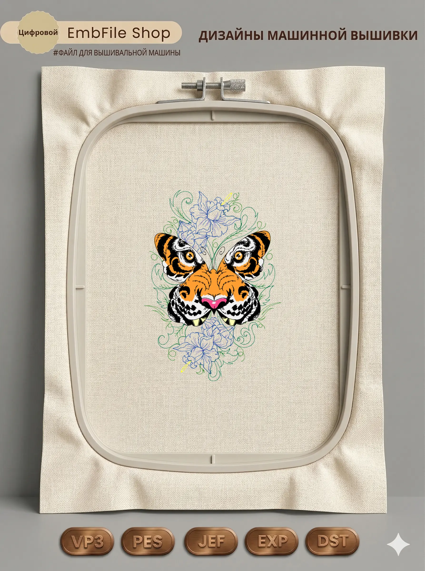 Это цифровой файл для вышивальной машины, а не физический товар (нашивка). Для работы с файлом вам необходимо иметь вышивальную машину и способ передачи файла на устройство (USB-флешка и т.д.).