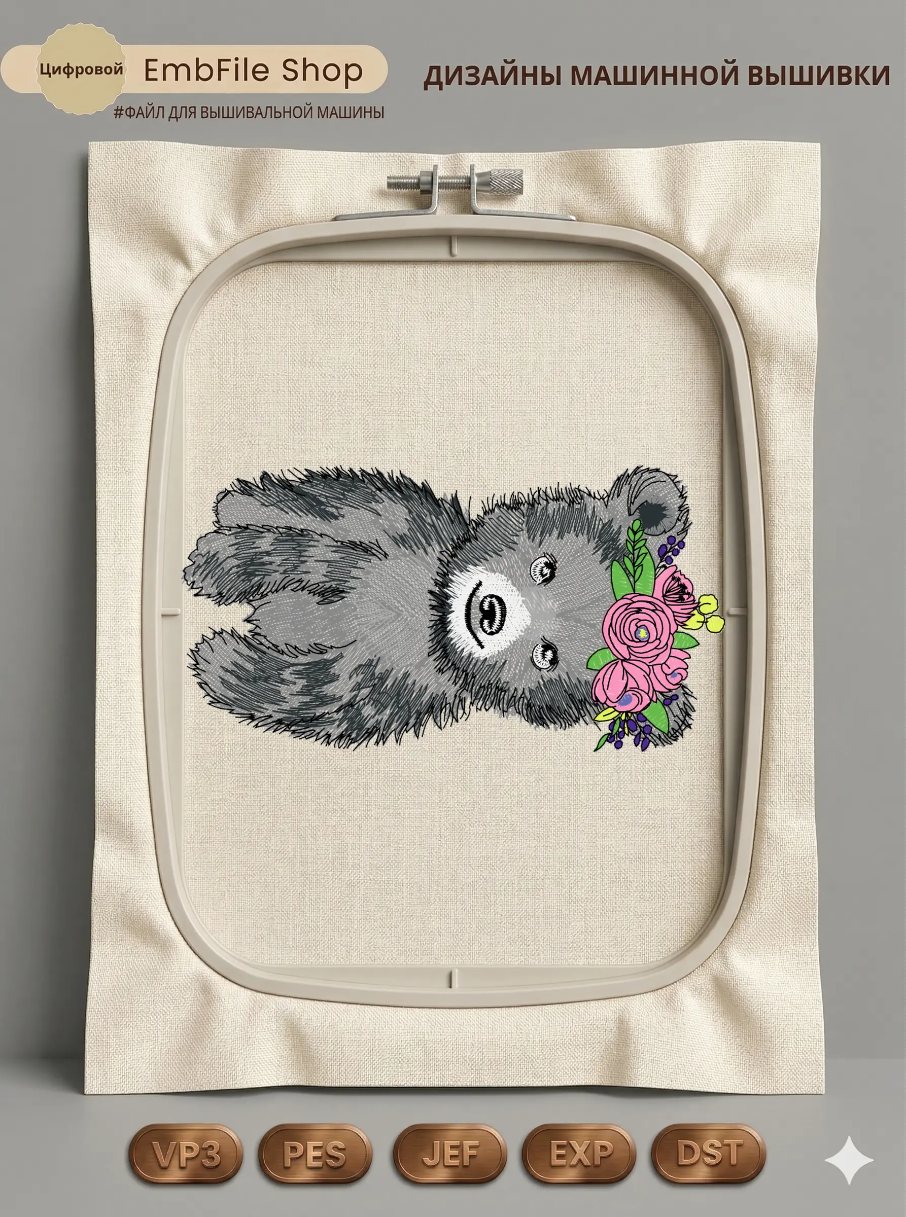 Это цифровой файл для вышивальной машины, а не физический товар (нашивка). Для работы с файлом вам необходимо иметь вышивальную машину и способ передачи файла на устройство (USB-флешка и т.д.).