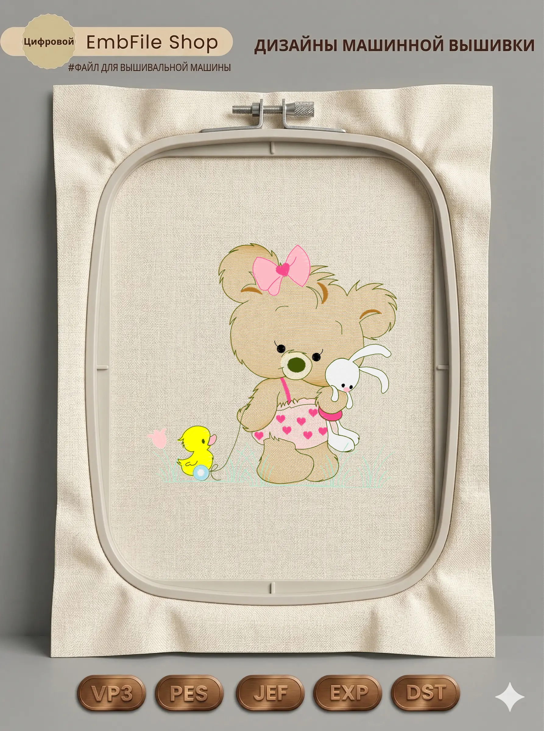 Дизайн протестирован на различных типах тканей, что гарантирует чистое и стабильное нанесение стежков.
