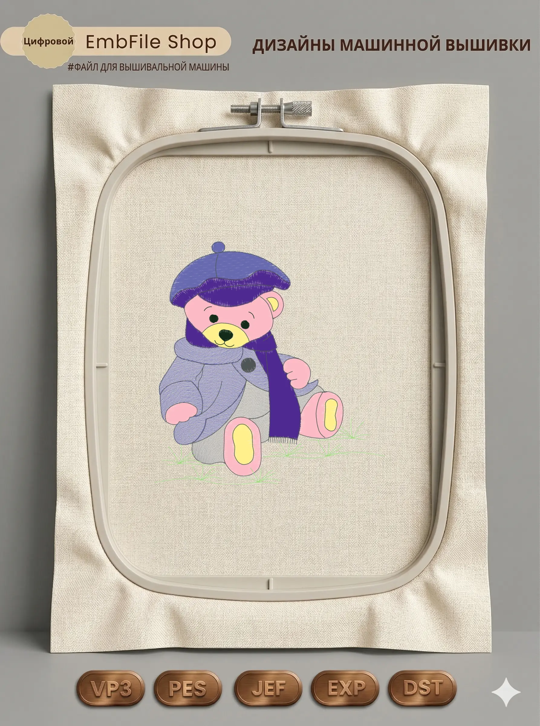 Дизайн протестирован на различных типах тканей, что гарантирует чистое и стабильное нанесение стежков.