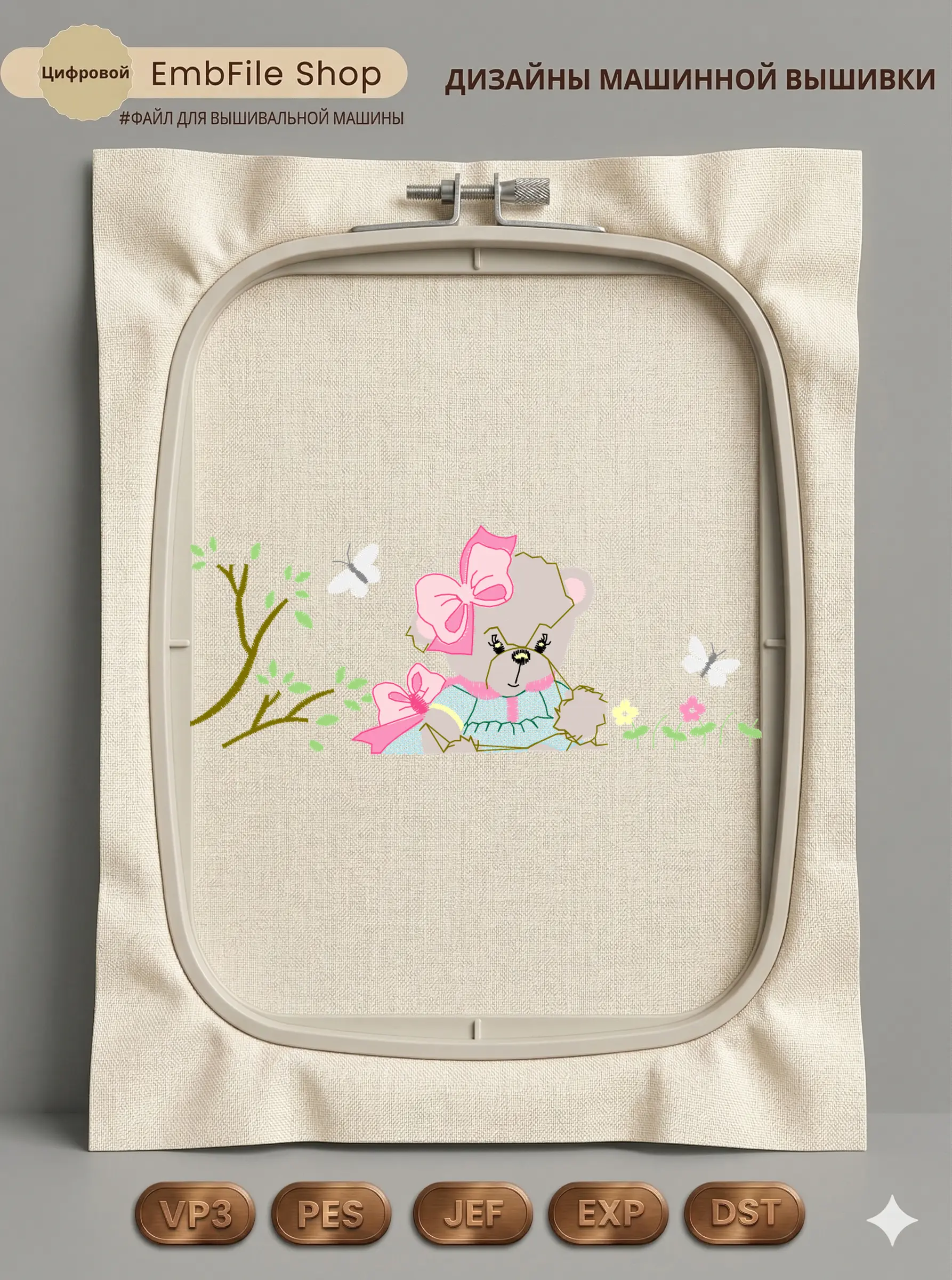 Дизайн протестирован на различных типах тканей, что гарантирует чистое и стабильное нанесение стежков.