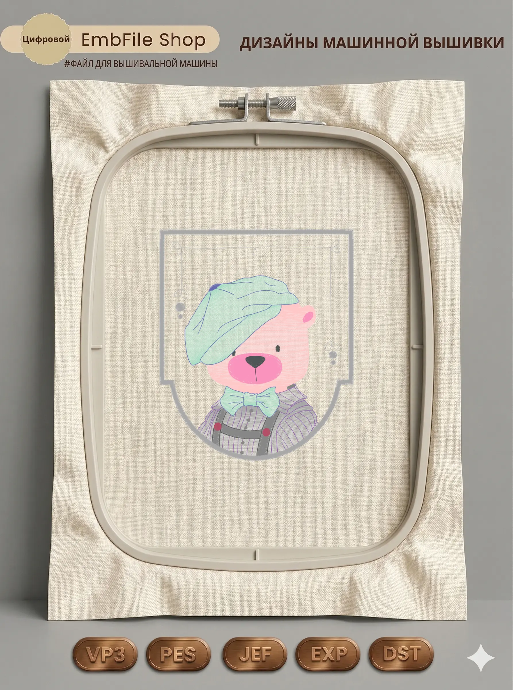 Дизайн протестирован на различных типах тканей, что гарантирует чистое и стабильное нанесение стежков.
