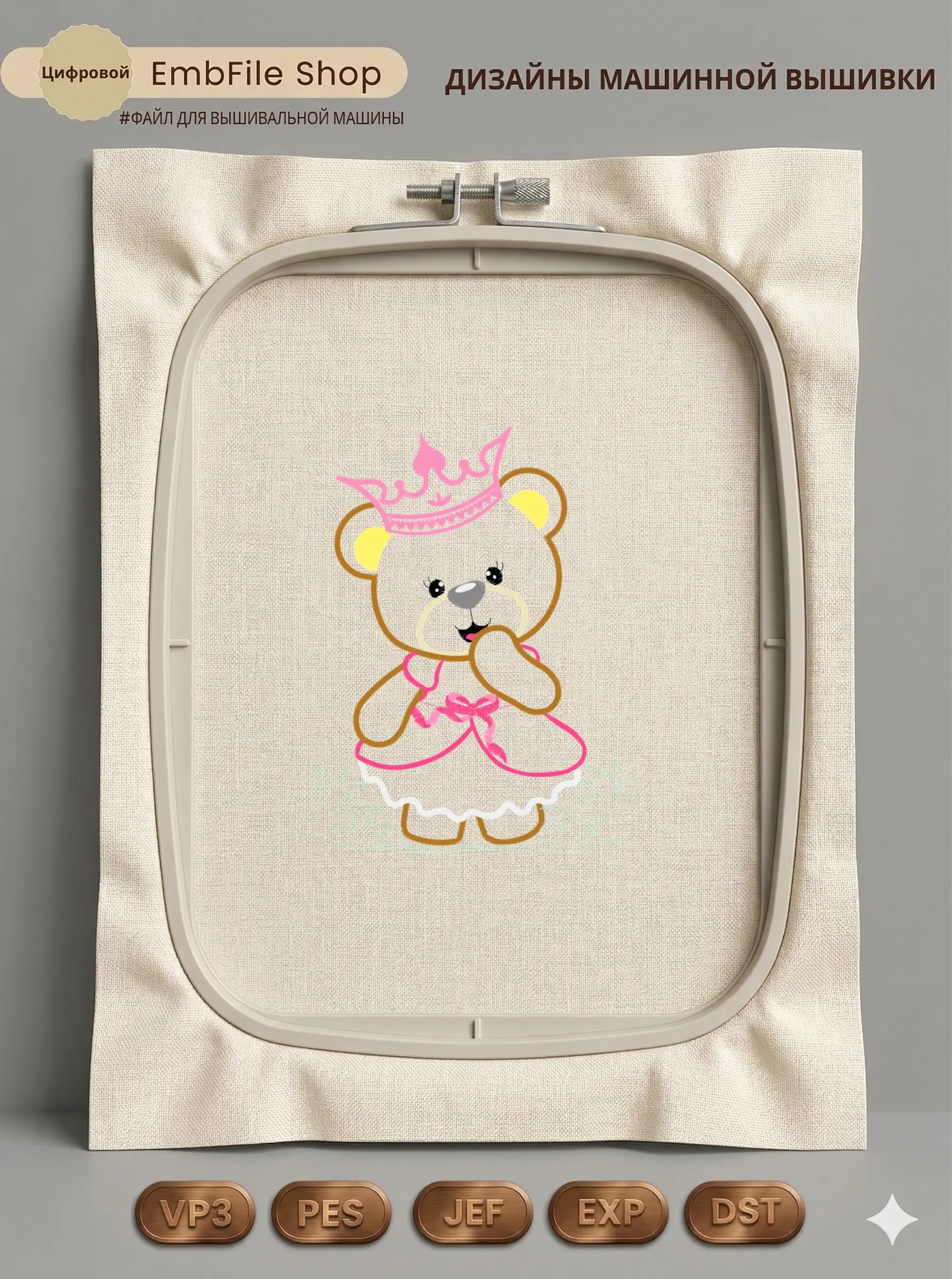Дизайн протестирован на различных типах тканей, что гарантирует чистое и стабильное нанесение стежков.